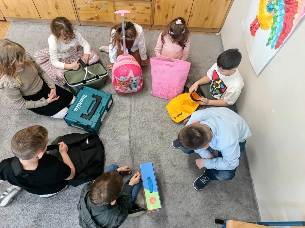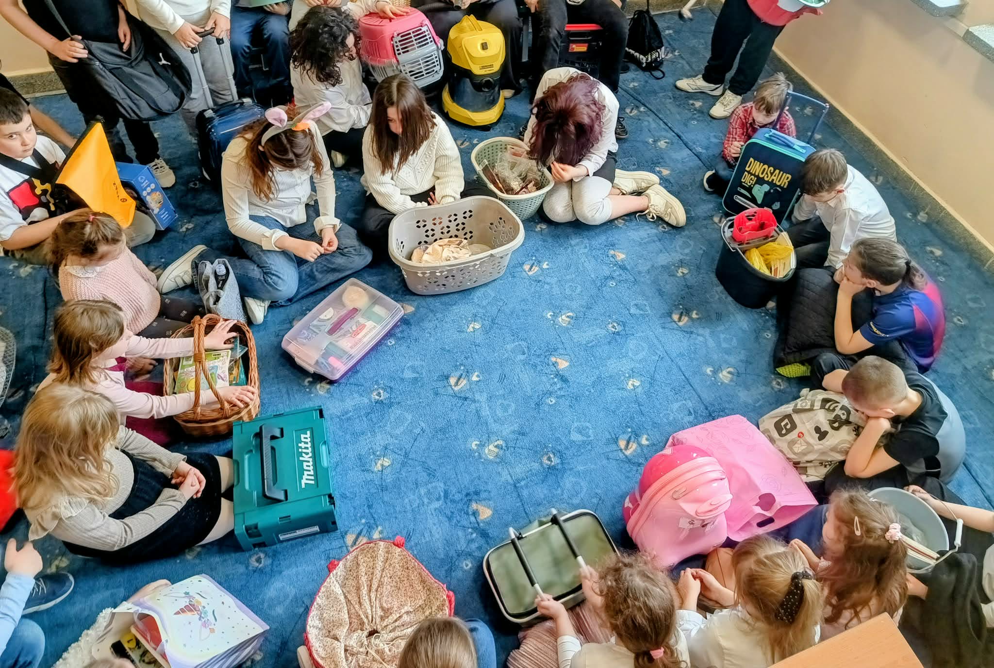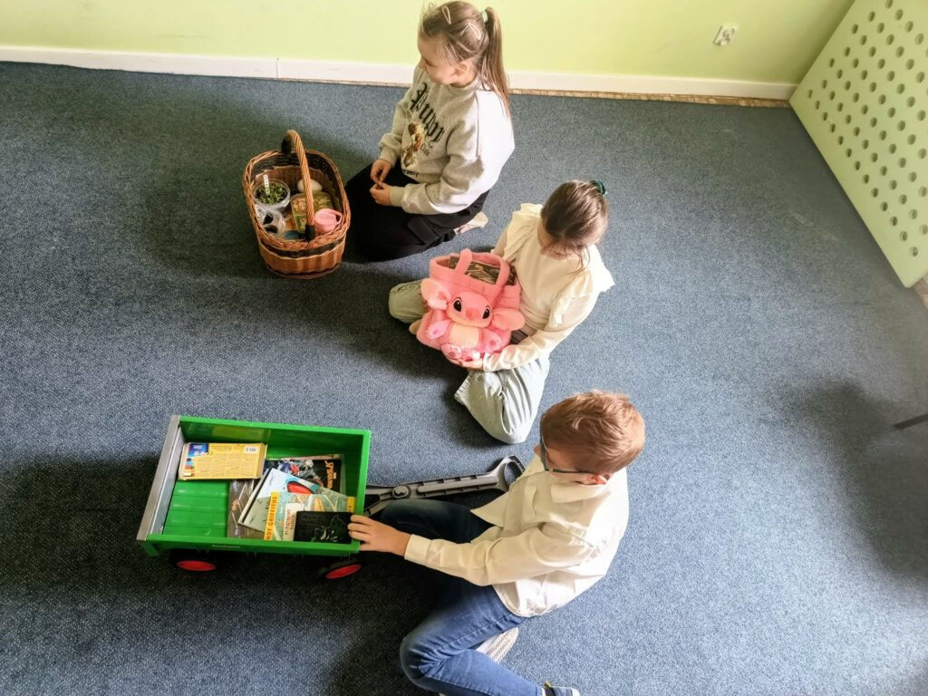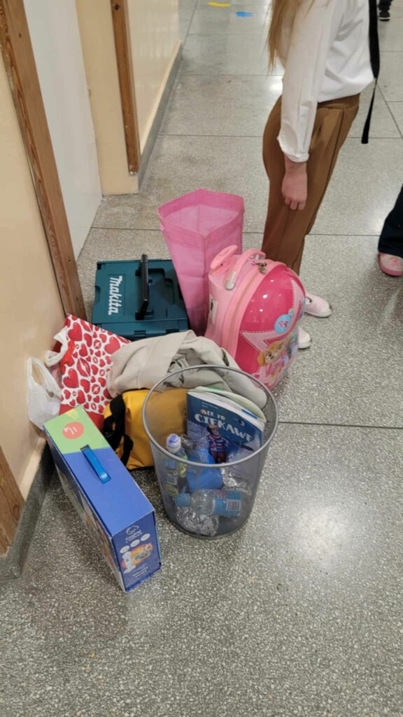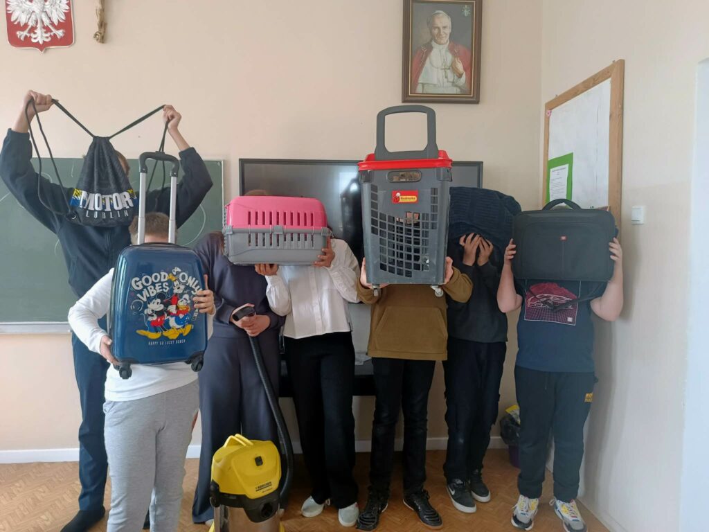 Nasi uczniowie mogli wykazać się kreatywnością w poszukiwaniu zastępstwa dla tradycyjnego plecaka. Oczywiście udowodnili, że ich wyobraźnia nie zna granic. Zeszyty, podręczniki, przybory, a także drugie śniadanie zostały spakowane m.in. w różnego rodzaju kosze: zakupowe, wiklinowe, na pranie, na śmieci. Pojawiły się również: poszewka na poduszkę, torba na laptopa, transporter dla zwierząt, przyczepka, skrzynka narzędziowa, odkurzacz, wiadra (w tym od mopa), walizki, pojemnik na ciasto, garnek, reklamówki, różnego rodzaju torby, torebki prezentowe czy worki. Liczyła się pomysłowość i spryt, a tego naszym uczniom nie brakuje.