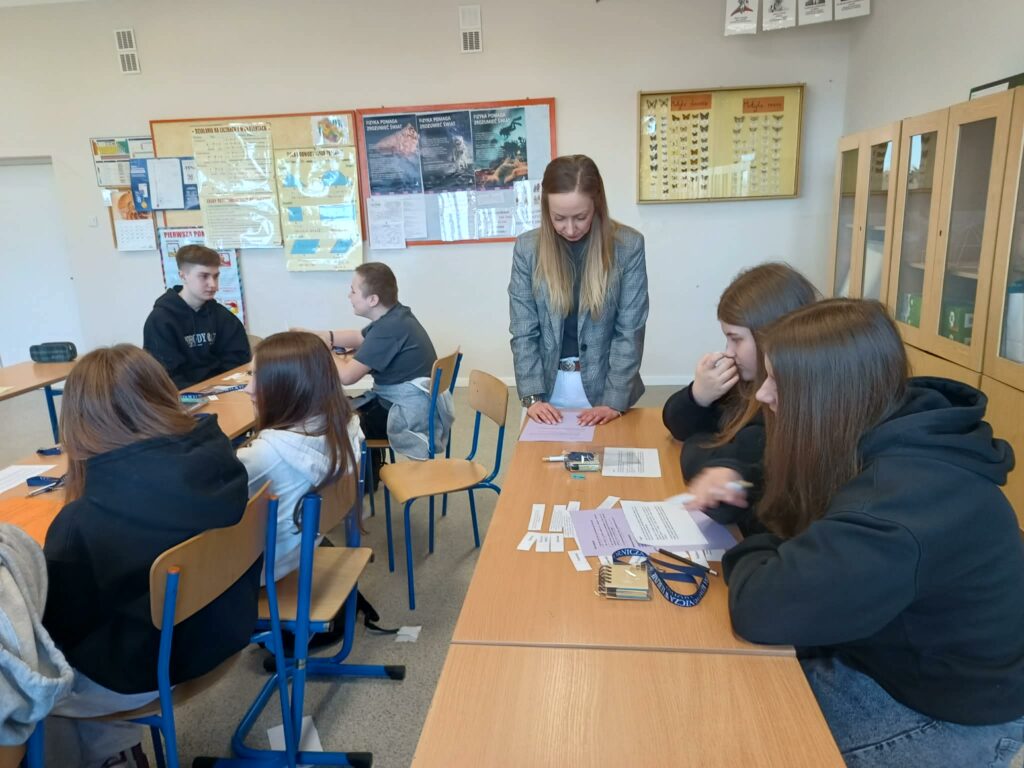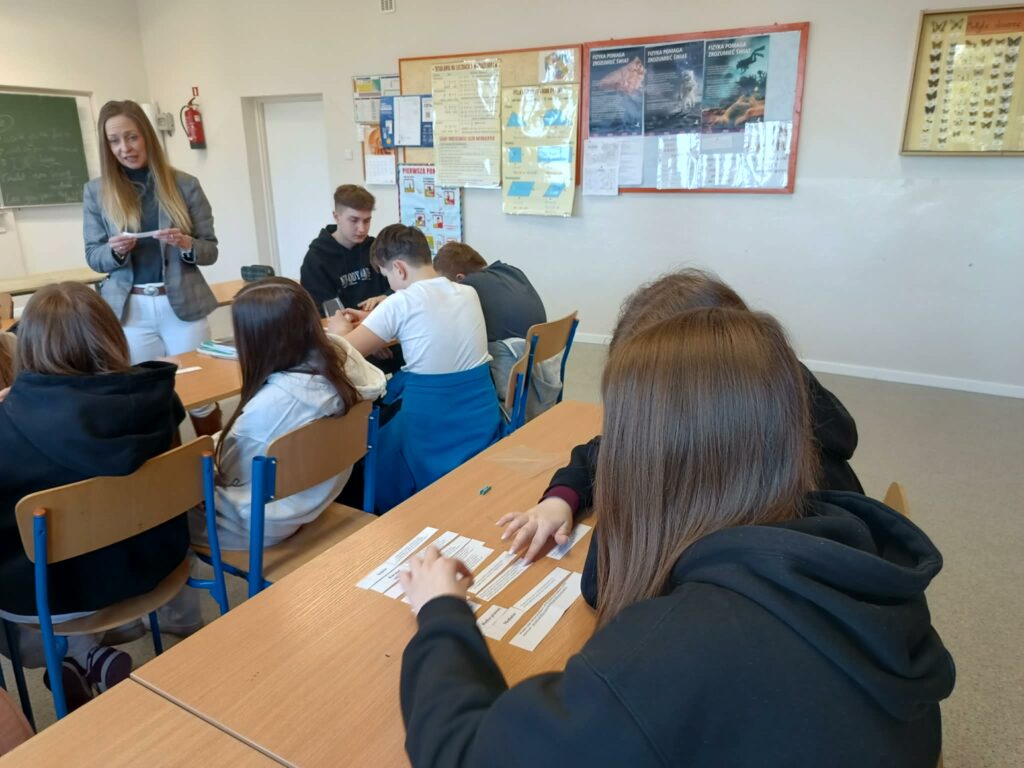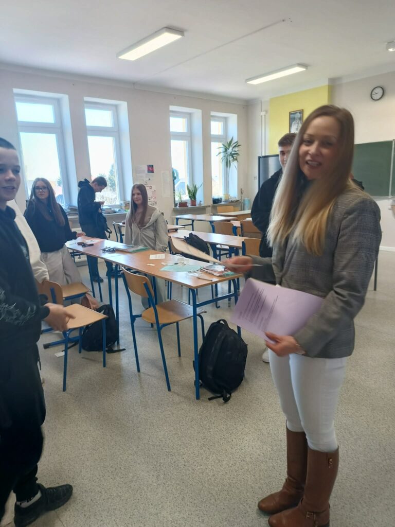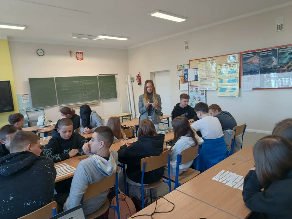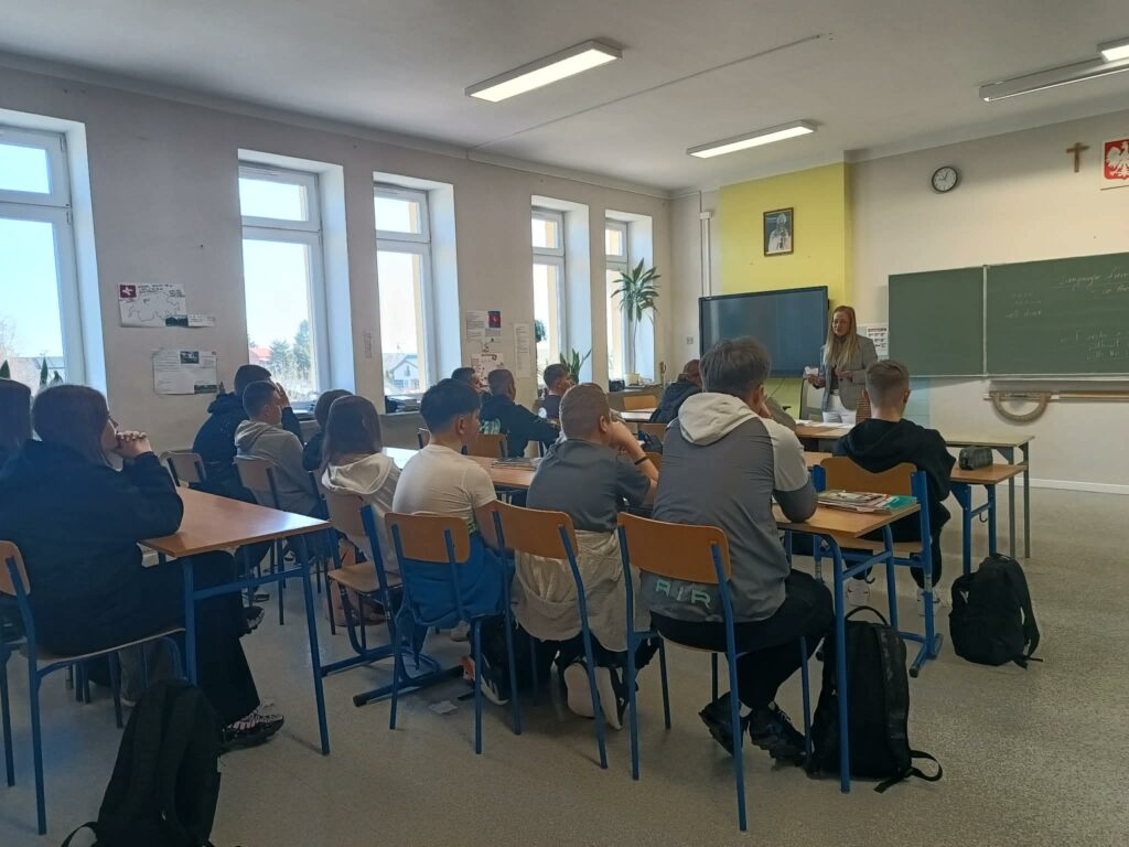Takie spotkanie odbyło się również w naszej szkole. W dniu 9 marca 2026 r. uczniowie klasy 7 i 8 mieli okazję uczestniczyć w spotkaniu z Panią Anną Stachyrą – Trybusiewicz – komornikiem sądowym, która opowiedziała o roli komornika w systemie prawnym, jego obowiązkach oraz wyzwaniach, jakie wiążą się z wykonywaniem tego zawodu. Uczniowie dowiedzieli się również o innych profesjach prawniczych, takich jak prokurator, adwokat, sędzia, kurator sądowy, radca prawny, rzecznik patentowy, mediator czy notariusz, a także o ścieżkach edukacyjnych prowadzących do tych zawodów. Spotkanie było świetną okazją do zdobycia cennych informacji i zadania pytań dotyczących pracy w wymiarze sprawiedliwości.