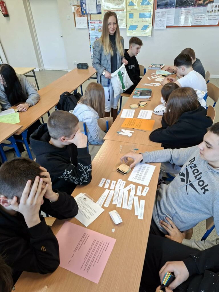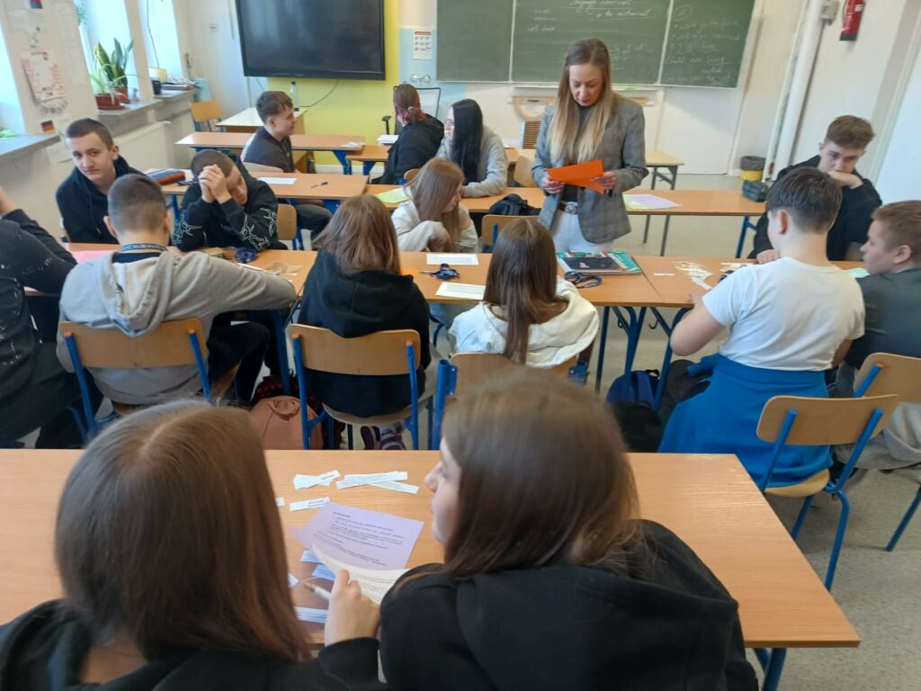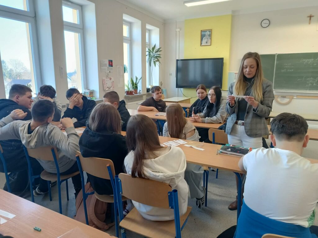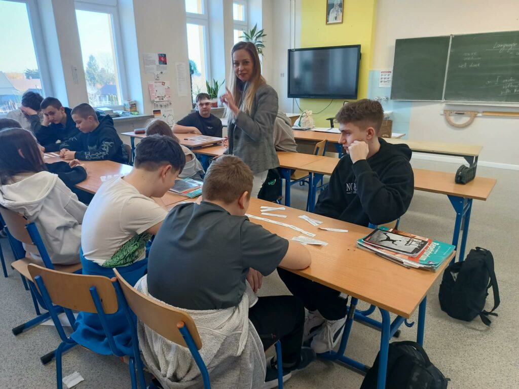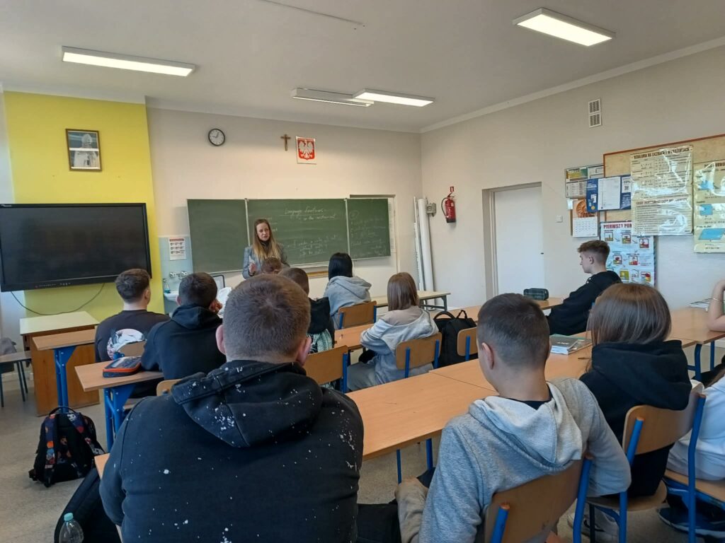 Takie spotkanie odbyło się również w naszej szkole. W dniu 9 marca 2026 r. uczniowie klasy 7 i 8 mieli okazję uczestniczyć w spotkaniu z Panią Anną Stachyrą – Trybusiewicz – komornikiem sądowym, która opowiedziała o roli komornika w systemie prawnym, jego obowiązkach oraz wyzwaniach, jakie wiążą się z wykonywaniem tego zawodu. Uczniowie dowiedzieli się również o innych profesjach prawniczych, takich jak prokurator, adwokat, sędzia, kurator sądowy, radca prawny, rzecznik patentowy, mediator czy notariusz, a także o ścieżkach edukacyjnych prowadzących do tych zawodów. Spotkanie było świetną okazją do zdobycia cennych informacji i zadania pytań dotyczących pracy w wymiarze sprawiedliwości.