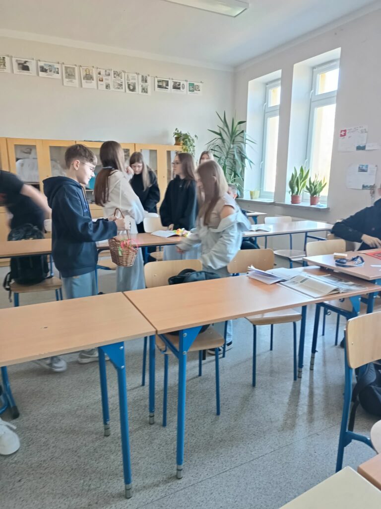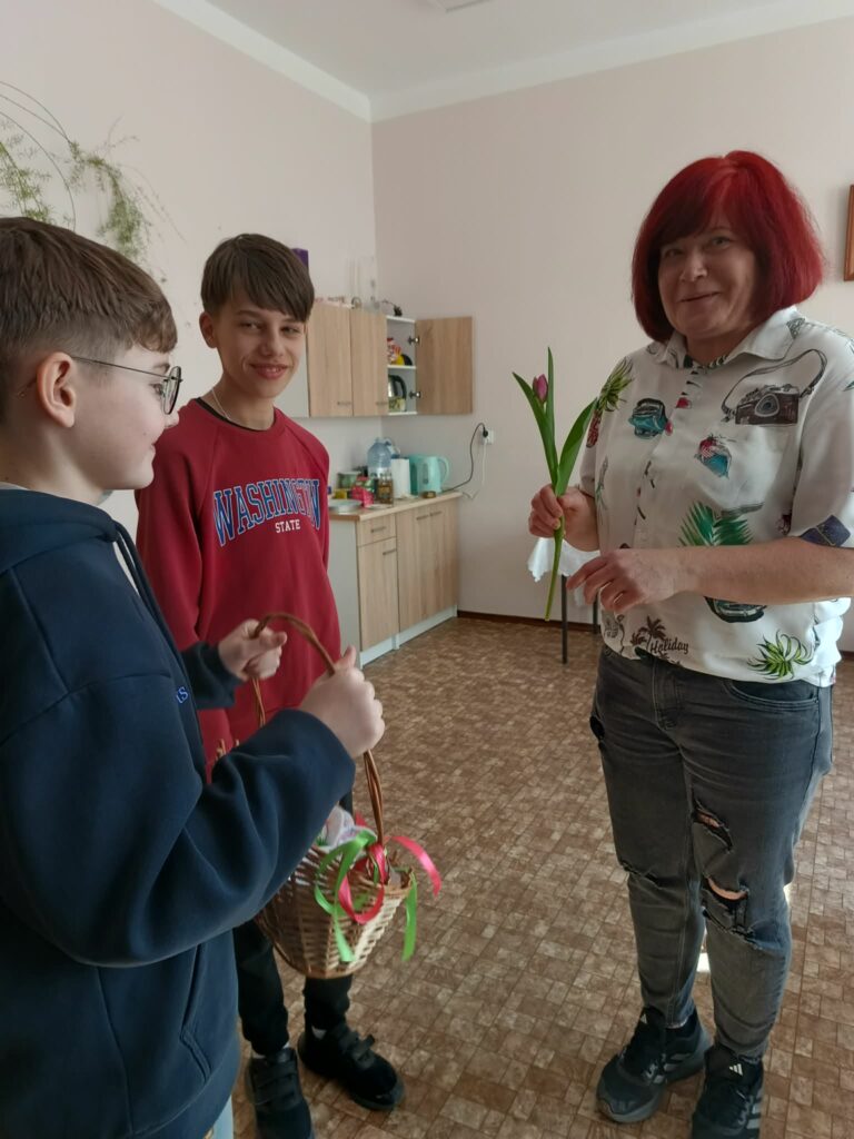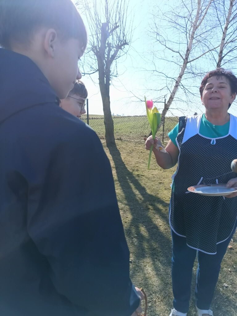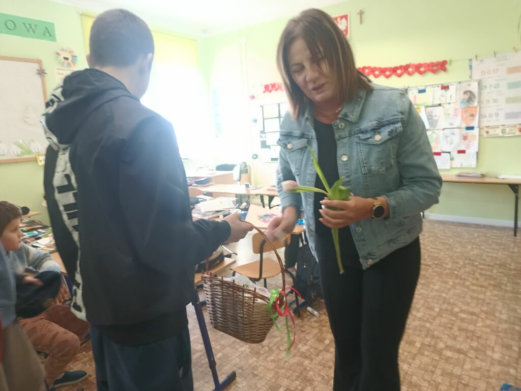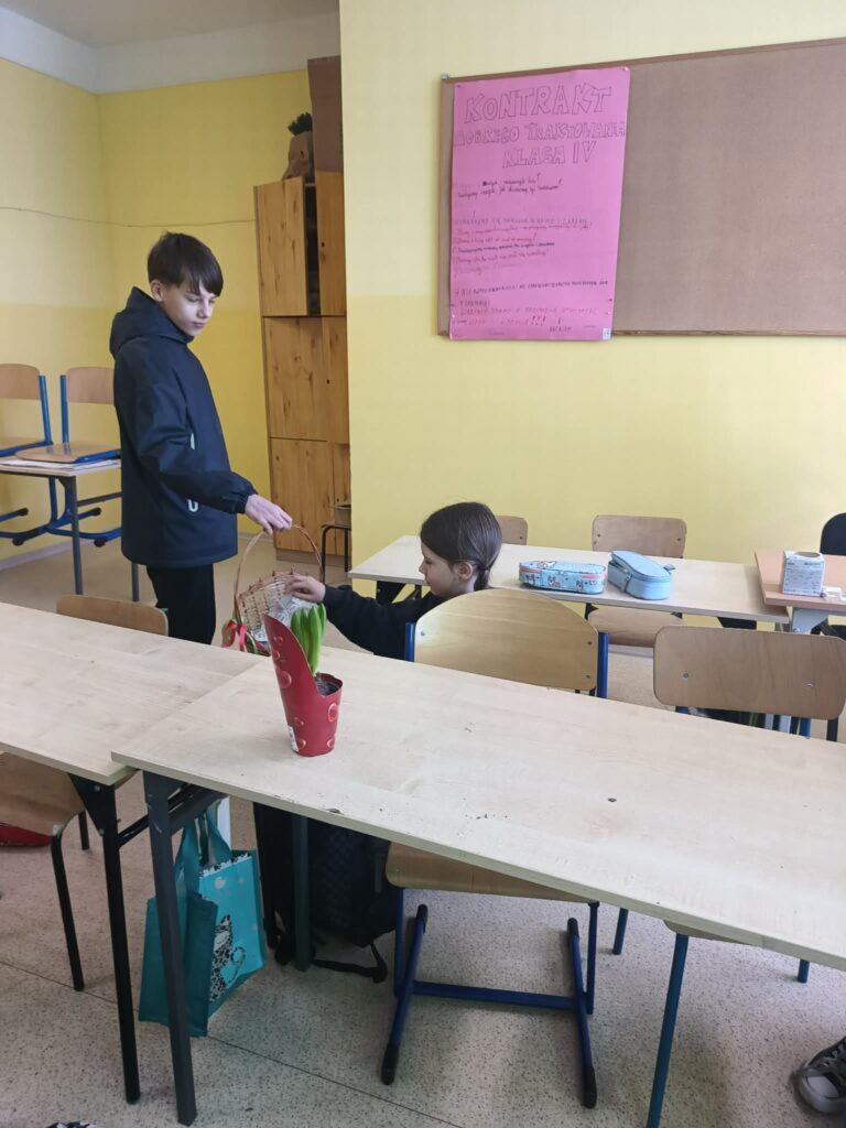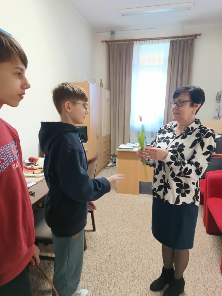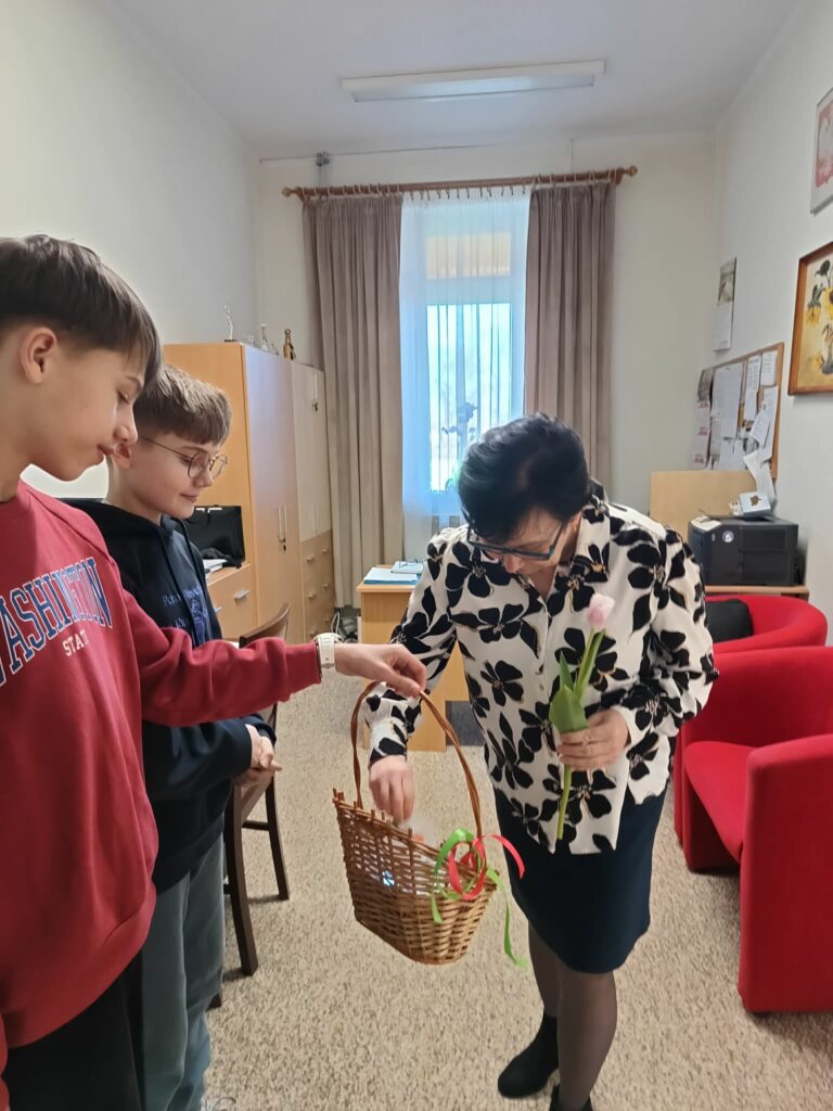 Z tej okazji chłopcy z Samorządu Uczniowskiego, przy wsparciu opiekuna, złożyli najserdeczniejsze życzenia wszystkim Paniom i Dziewczętom. Każda z nich otrzymała słodki upominek wraz z życzeniami. Paniom nauczycielkom oraz paniom pracującym w szkole wręczone zostały również symboliczne tulipany 🌷