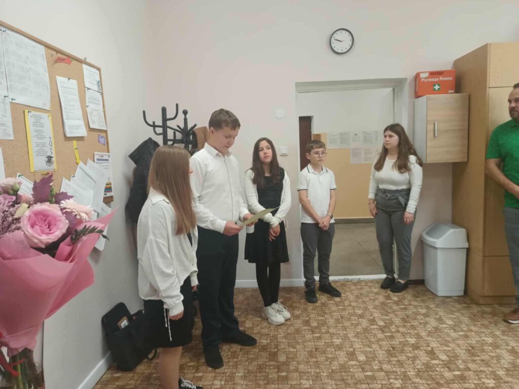 W poniedziałkowy poranek, 13 października, w Szkole Podstawowej im. Kornela Makuszyńskiego w Łańcuchowie odbyła się uroczysta akademia z okazji Dnia Edukacji Narodowej. To wyjątkowe święto, podczas którego uczniowie mieli okazję podziękować nauczycielom i pracownikom szkoły za ich codzienny trud, cierpliwość oraz zaangażowanie w nauczanie i wychowanie młodego pokolenia.