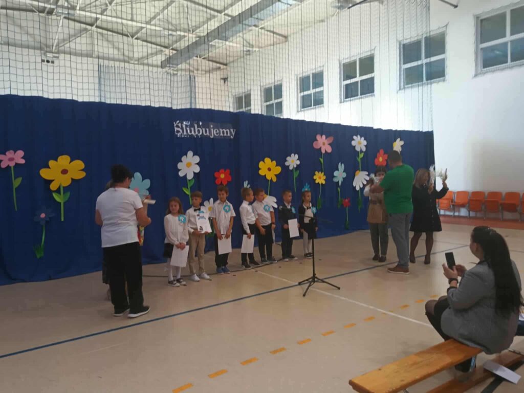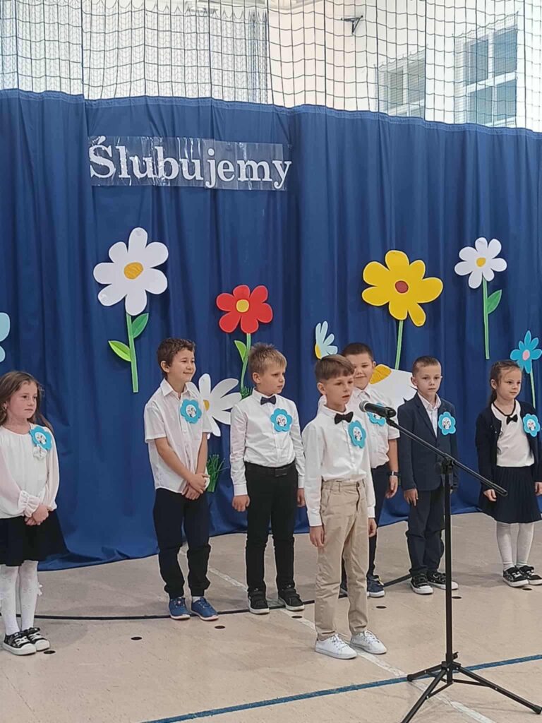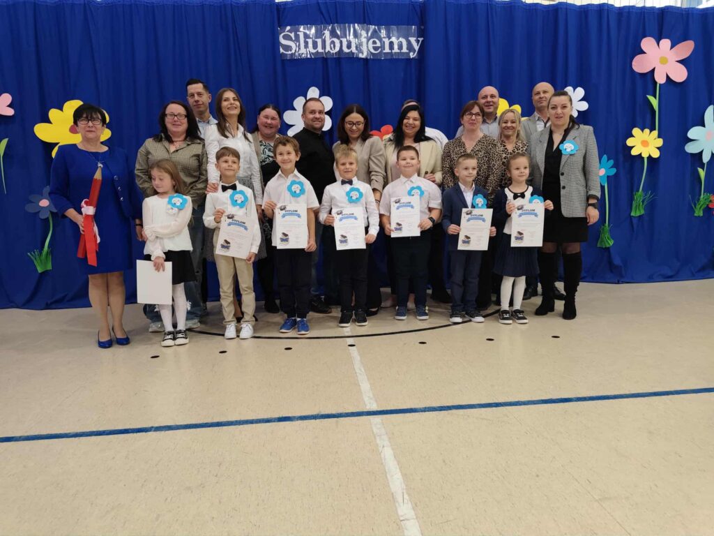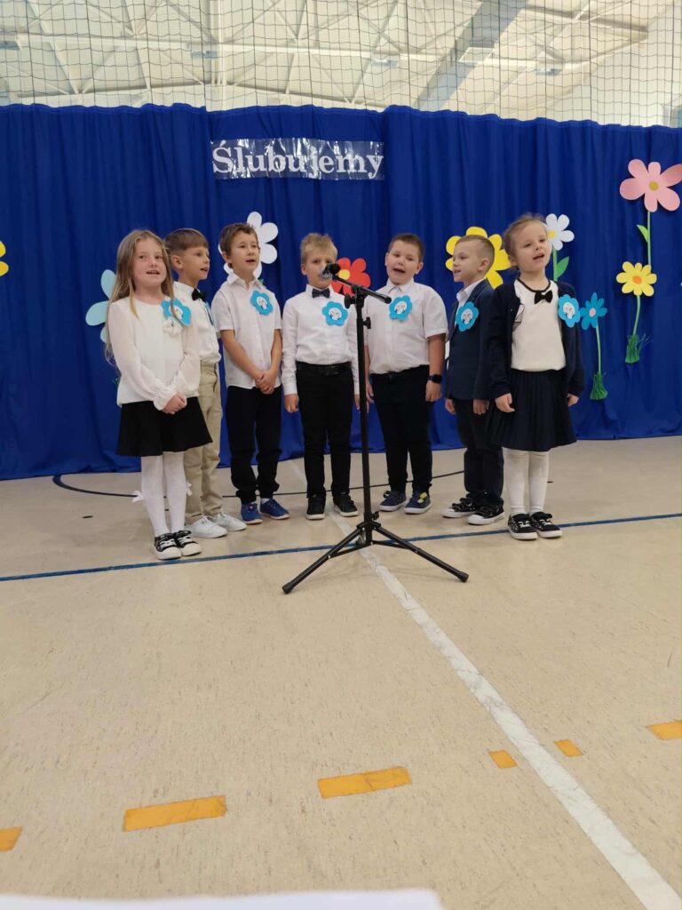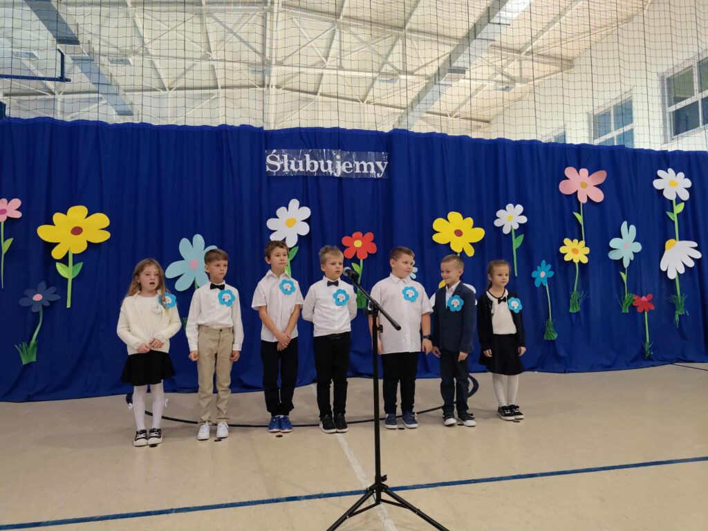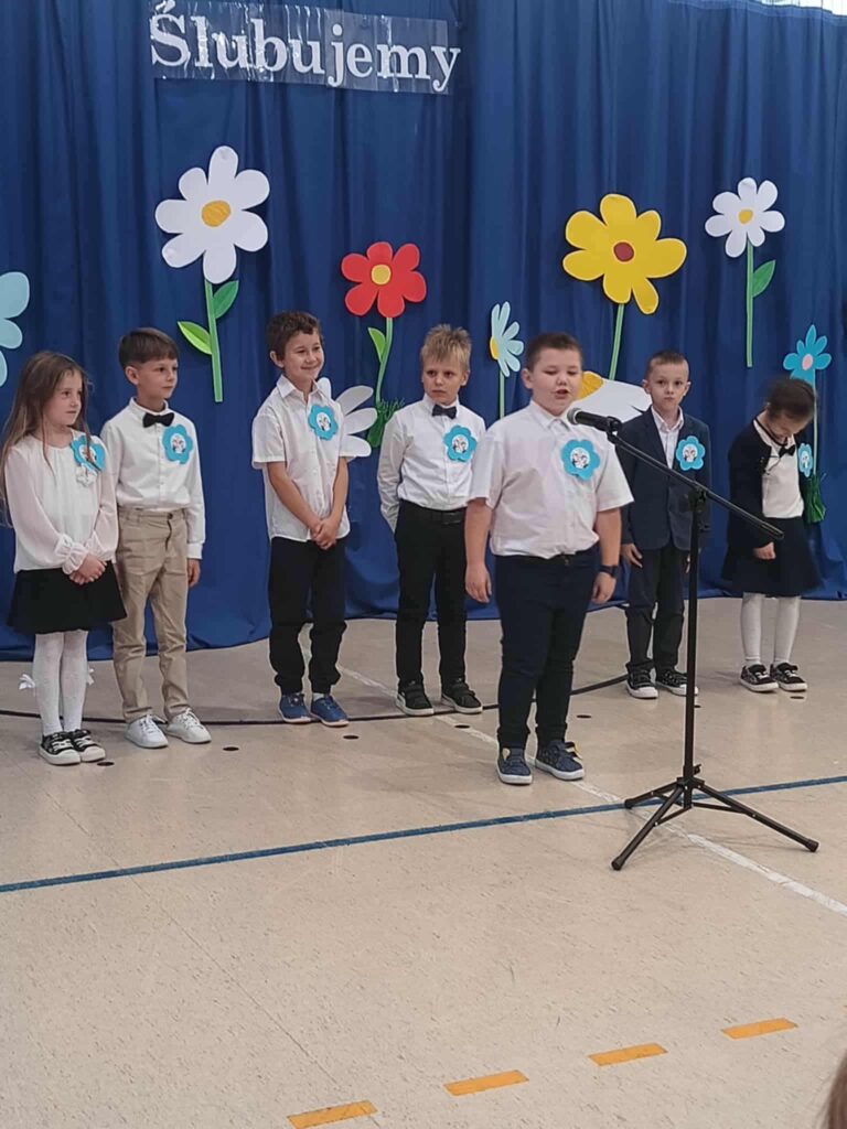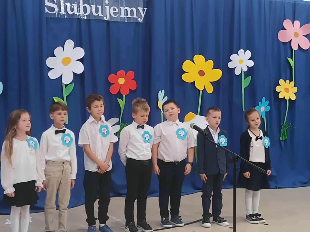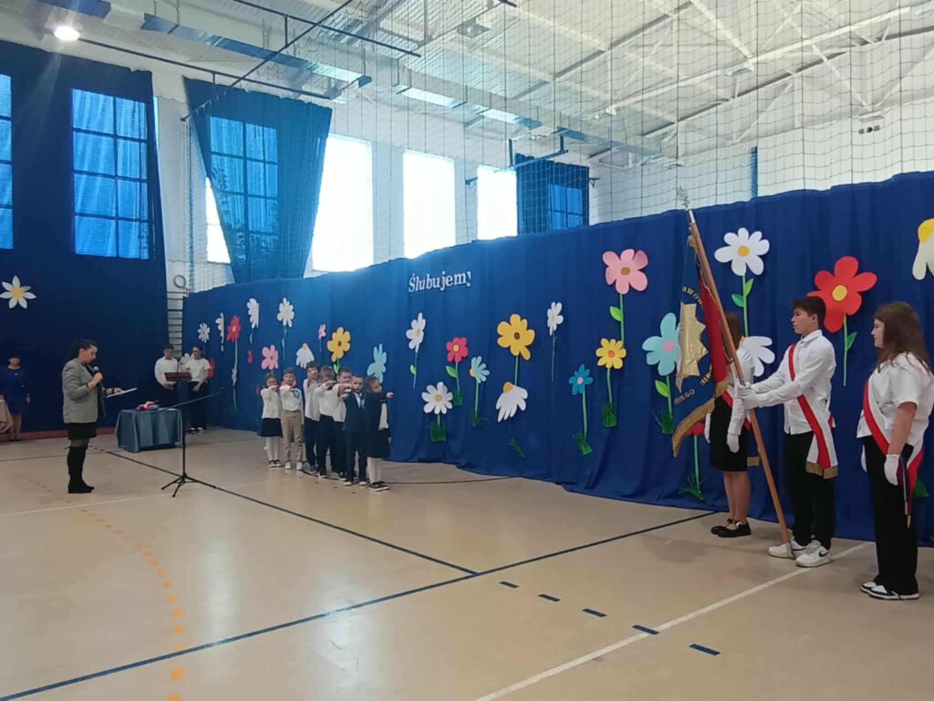 Tego dnia w szeregi braci uczniowskiej przyjęta została klasa pierwsza. Najmłodsi uczniowie z dumą zaprezentowali przed rodzicami oraz całą społecznością szkolną swoje artystyczne talenty. Całą uroczystość przypieczętowało ślubowanie na sztandar szkoły. Na zakończenie uroczystości pierwszoklasiści otrzymali pamiątkowe dyplomy i drobne upominki. Ten dzień był pełen emocji i wzruszeń, dumy rodziców i nauczycieli.