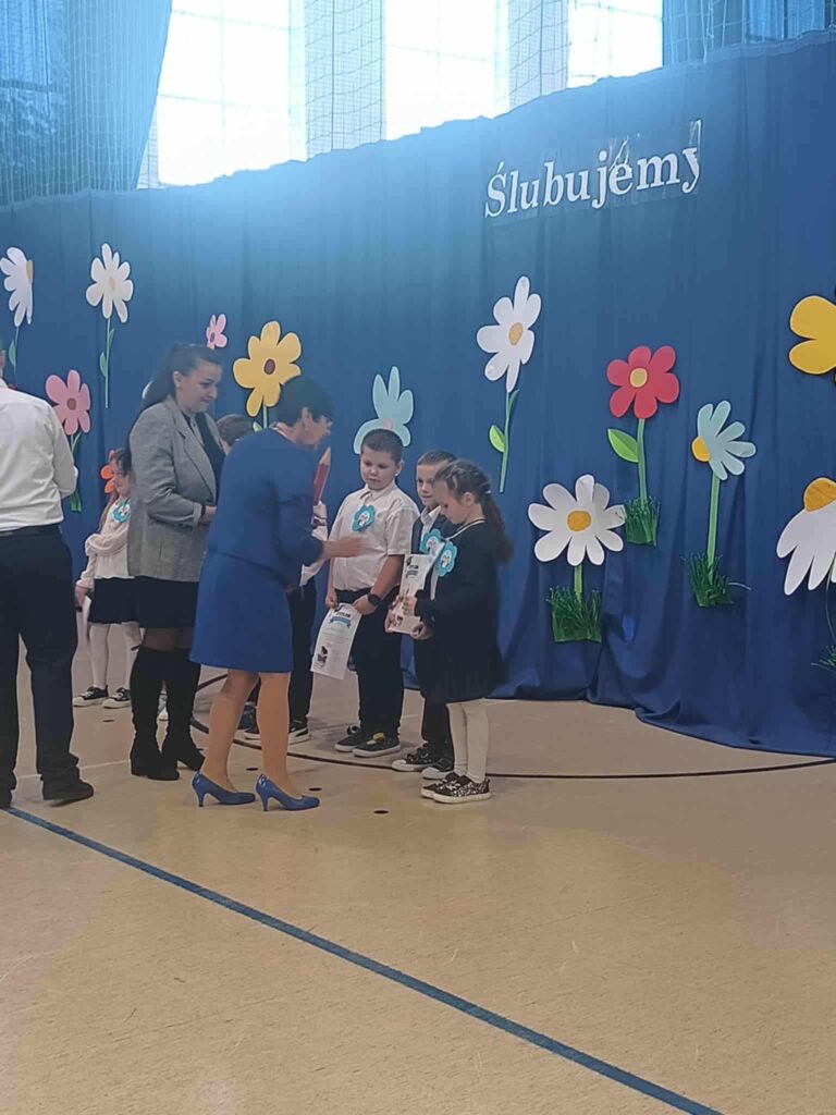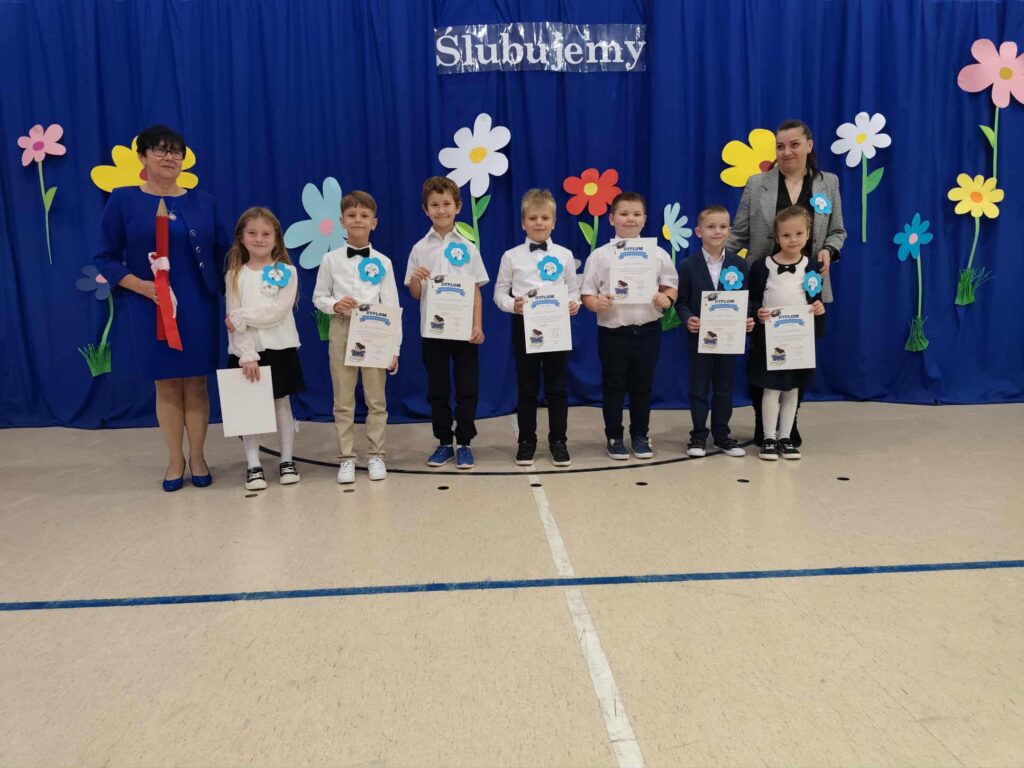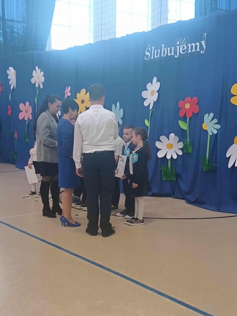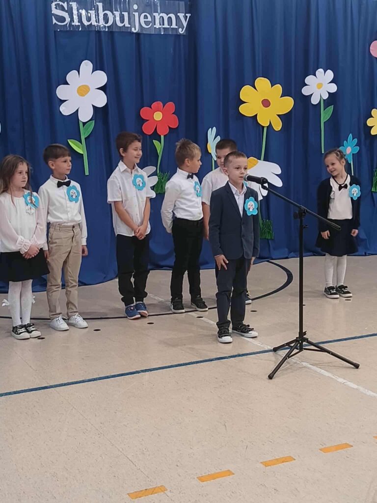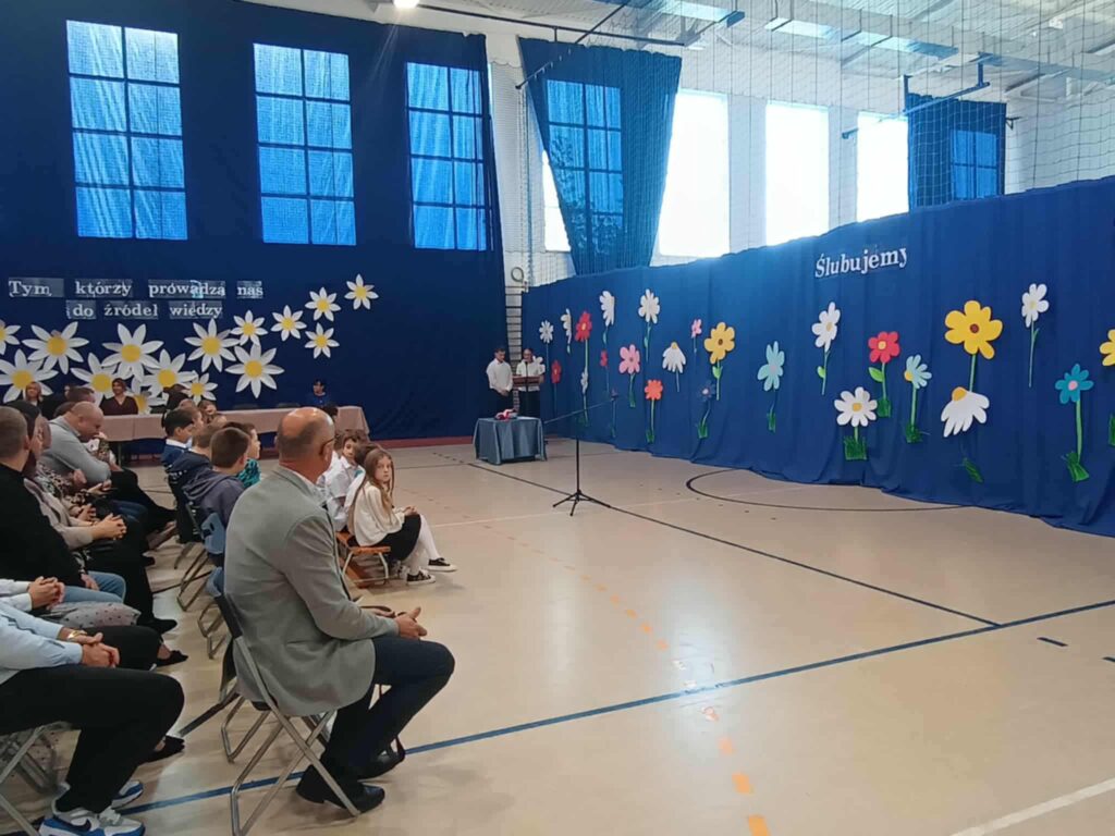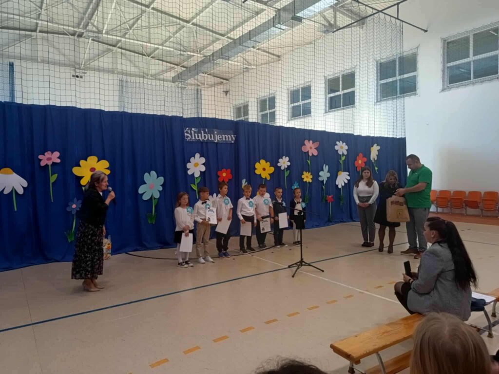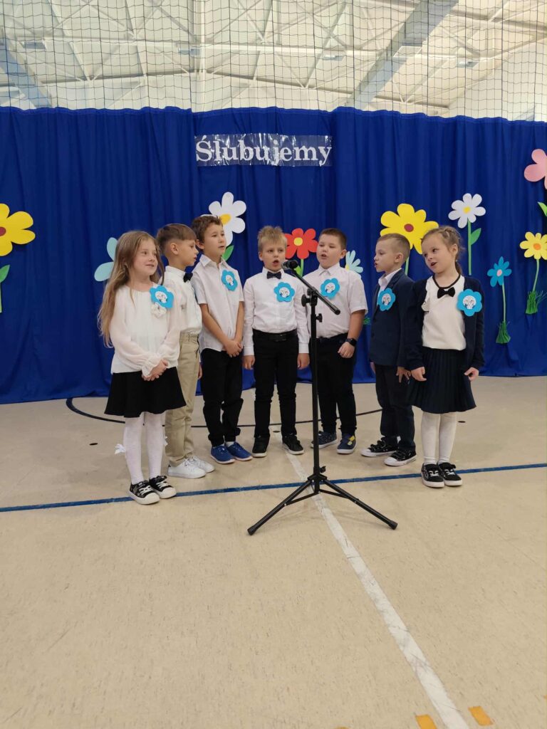 Tego dnia w szeregi braci uczniowskiej przyjęta została klasa pierwsza. Najmłodsi uczniowie z dumą zaprezentowali przed rodzicami oraz całą społecznością szkolną swoje artystyczne talenty. Całą uroczystość przypieczętowało ślubowanie na sztandar szkoły. Na zakończenie uroczystości pierwszoklasiści otrzymali pamiątkowe dyplomy i drobne upominki. Ten dzień był pełen emocji i wzruszeń, dumy rodziców i nauczycieli.