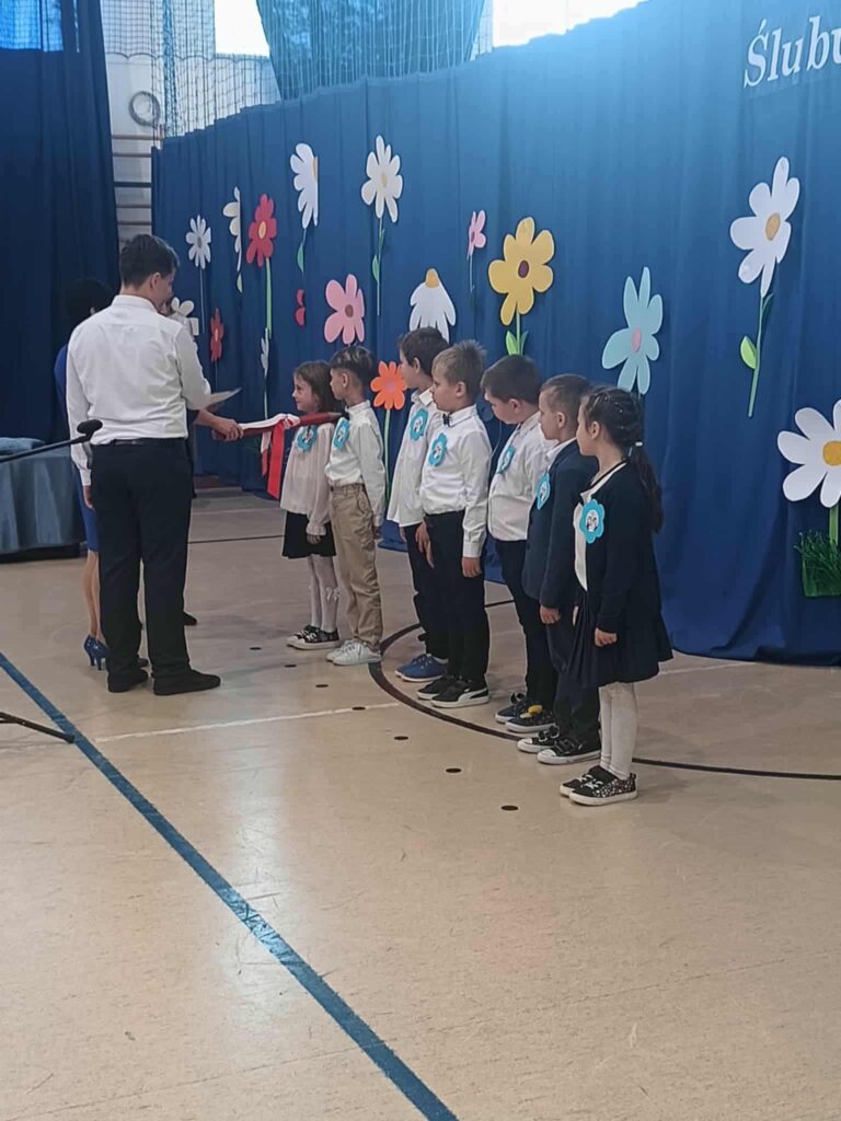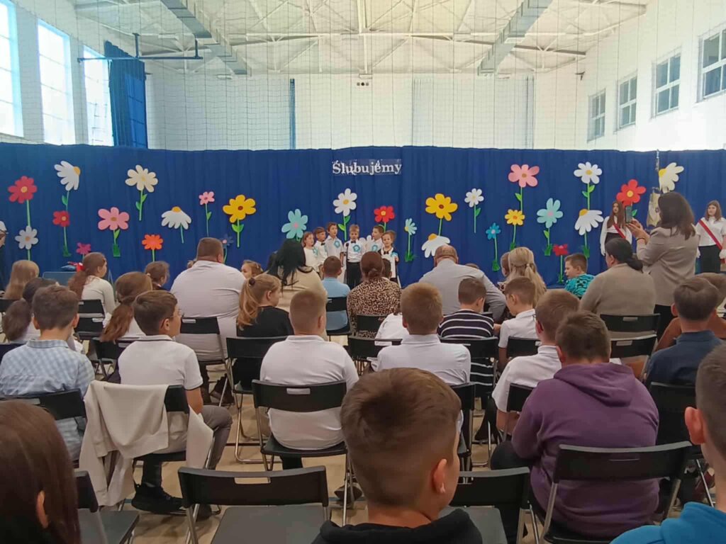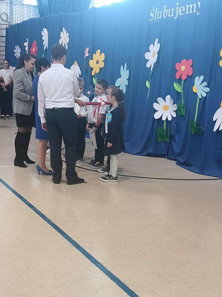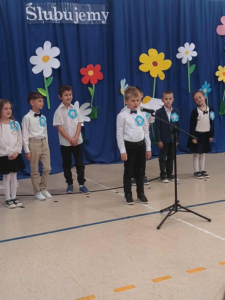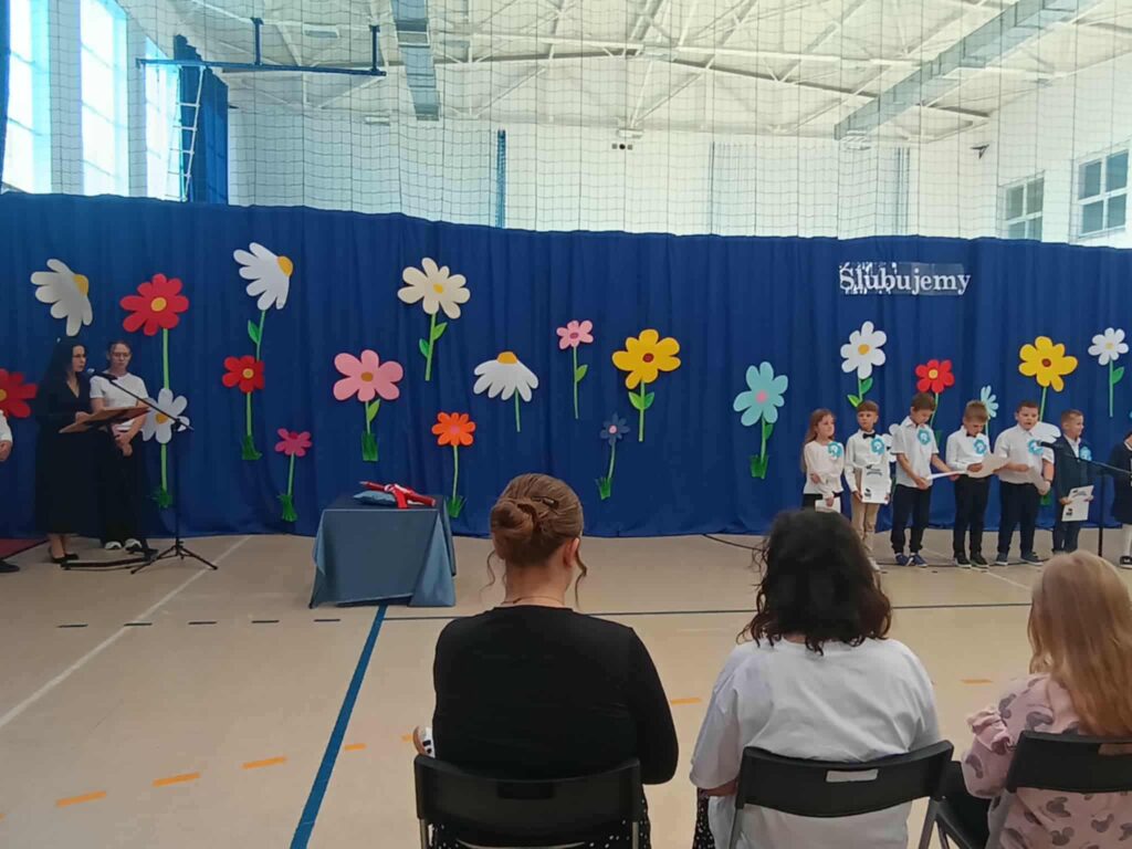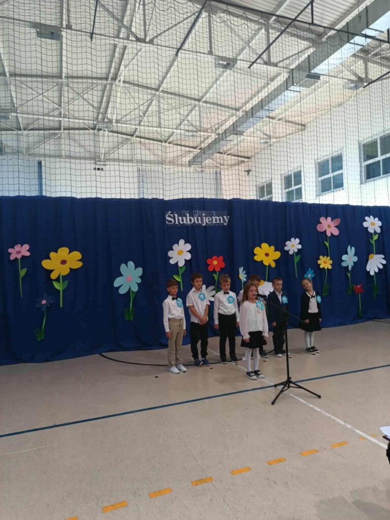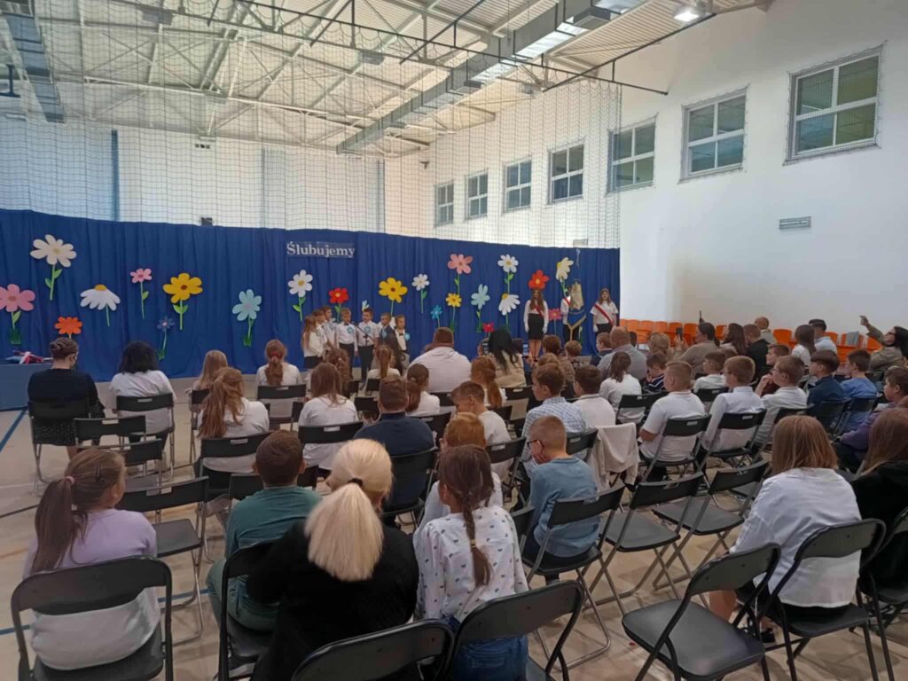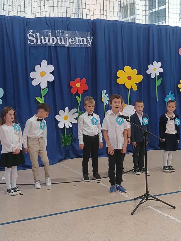 Tego dnia w szeregi braci uczniowskiej przyjęta została klasa pierwsza. Najmłodsi uczniowie z dumą zaprezentowali przed rodzicami oraz całą społecznością szkolną swoje artystyczne talenty. Całą uroczystość przypieczętowało ślubowanie na sztandar szkoły. Na zakończenie uroczystości pierwszoklasiści otrzymali pamiątkowe dyplomy i drobne upominki. Ten dzień był pełen emocji i wzruszeń, dumy rodziców i nauczycieli.