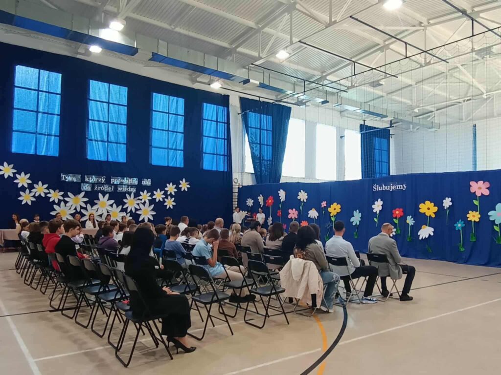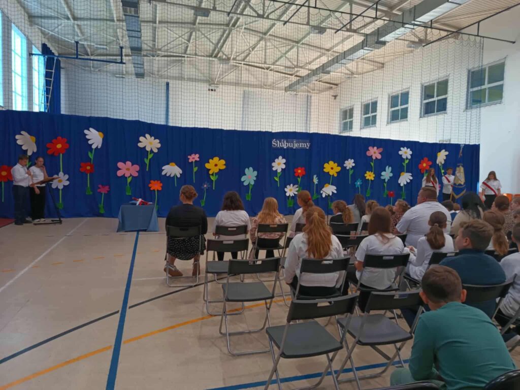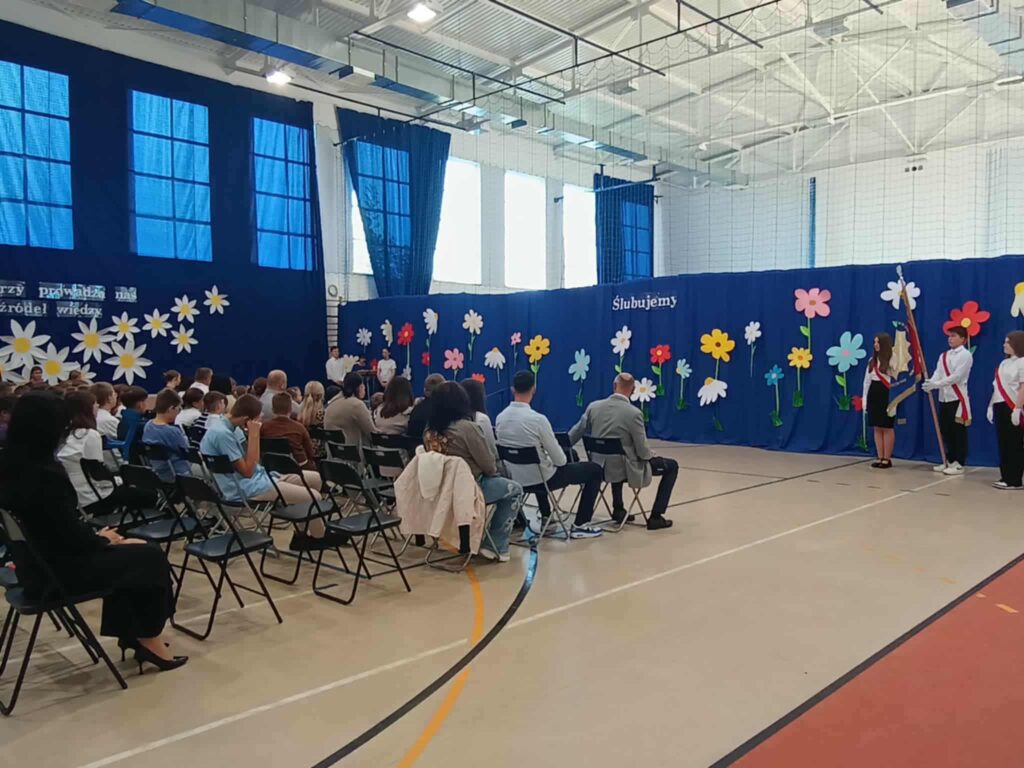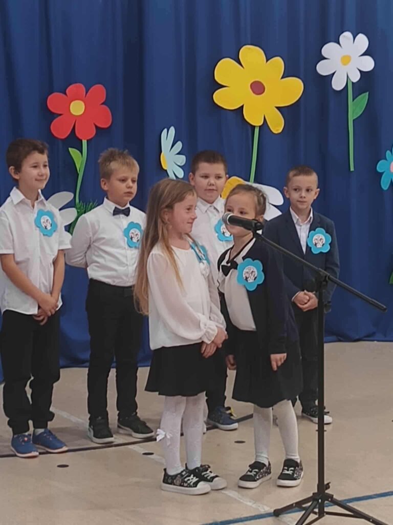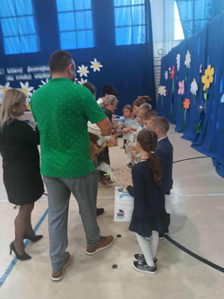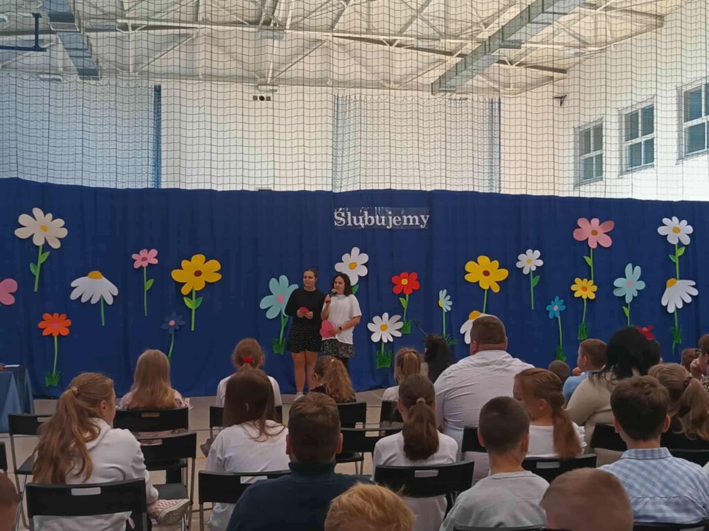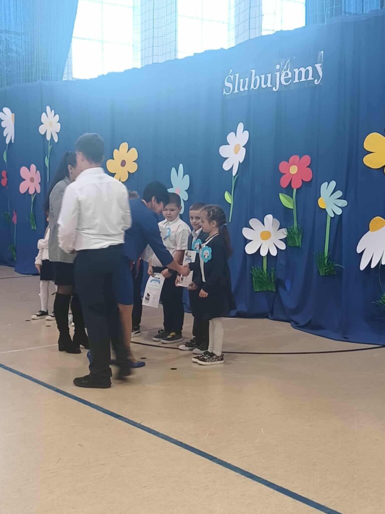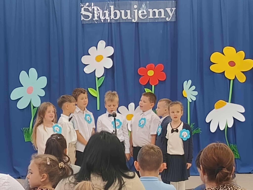 Tego dnia w szeregi braci uczniowskiej przyjęta została klasa pierwsza. Najmłodsi uczniowie z dumą zaprezentowali przed rodzicami oraz całą społecznością szkolną swoje artystyczne talenty. Całą uroczystość przypieczętowało ślubowanie na sztandar szkoły. Na zakończenie uroczystości pierwszoklasiści otrzymali pamiątkowe dyplomy i drobne upominki. Ten dzień był pełen emocji i wzruszeń, dumy rodziców i nauczycieli.