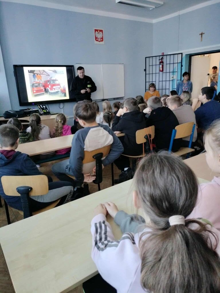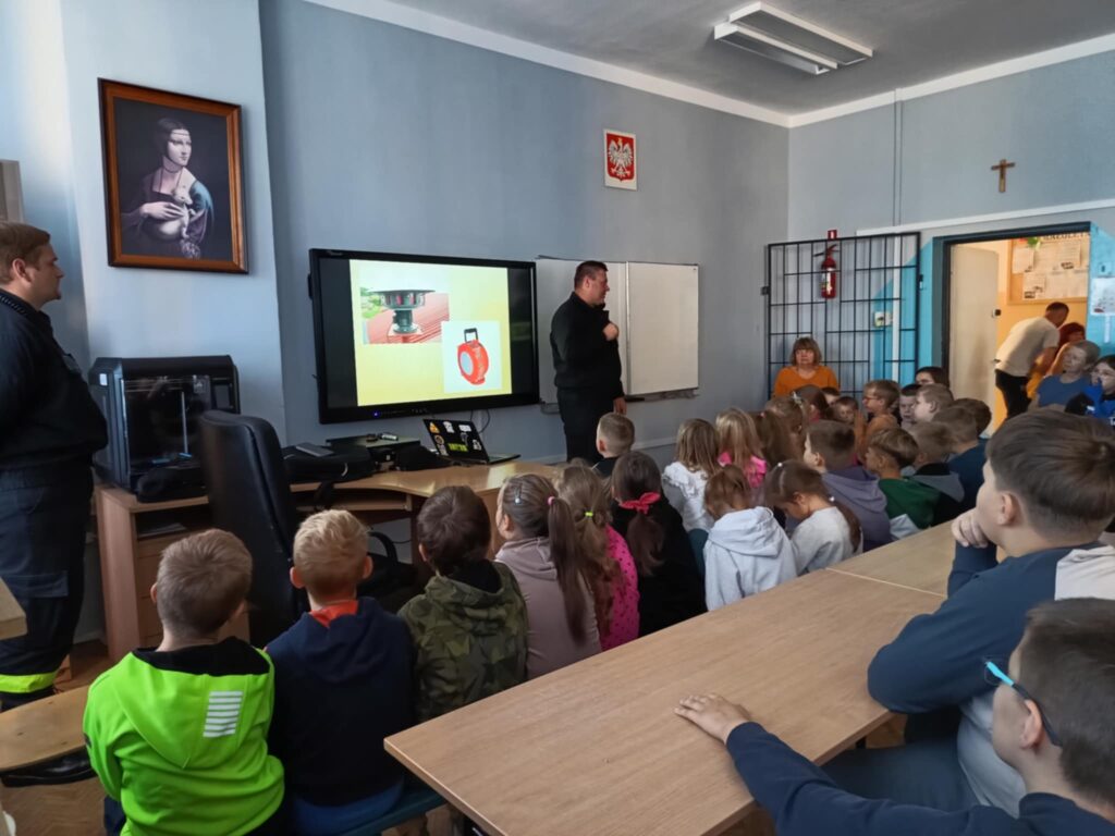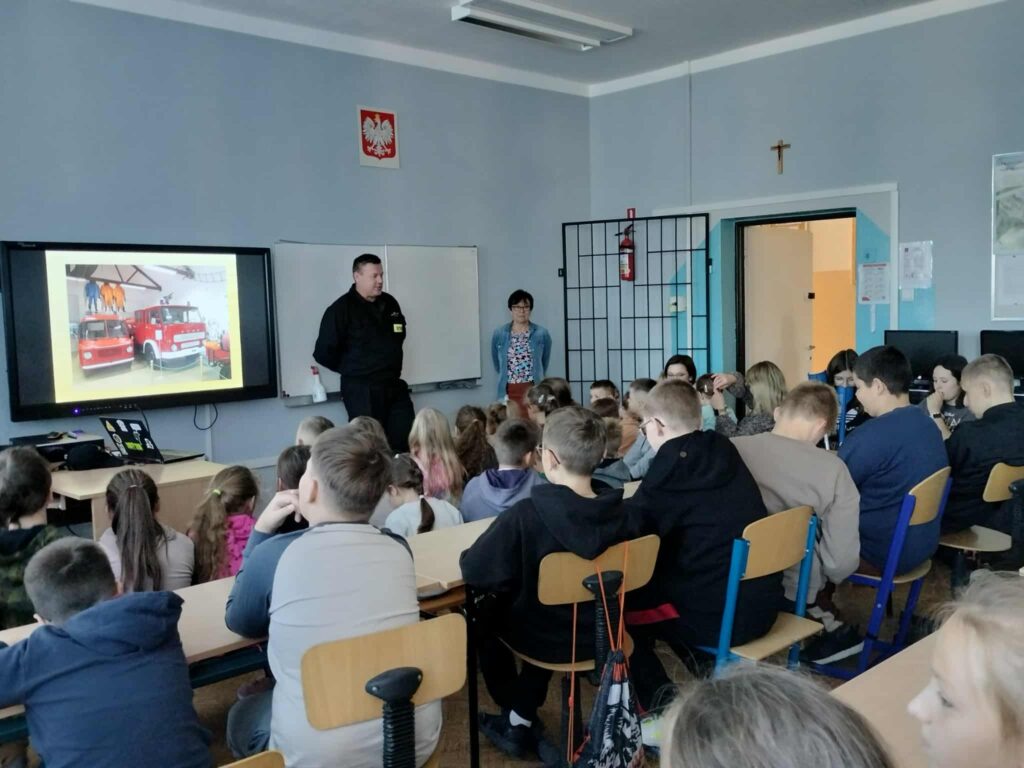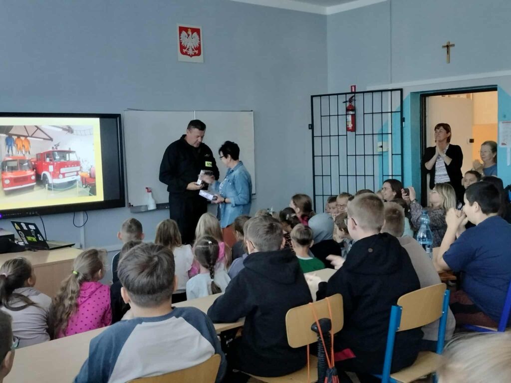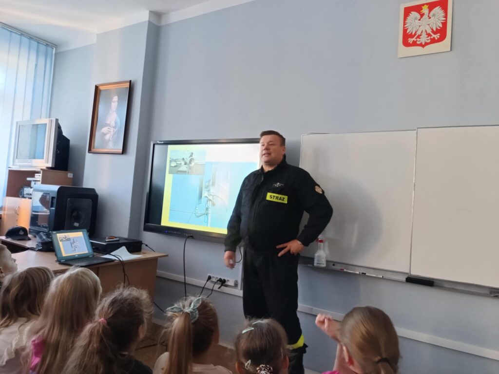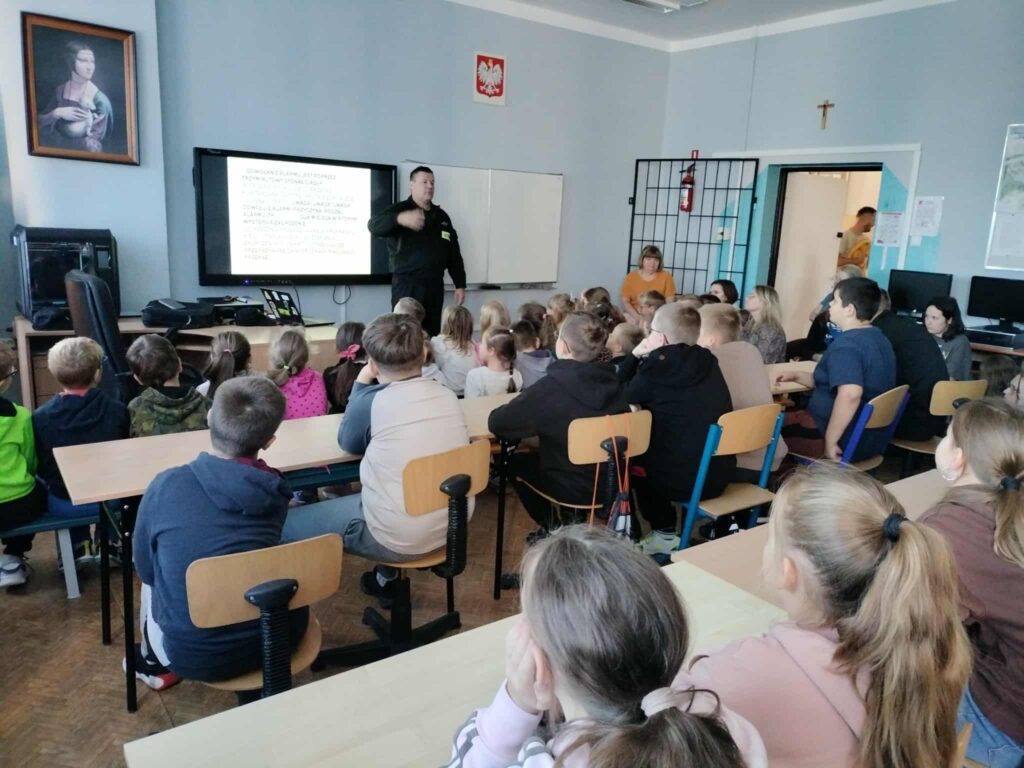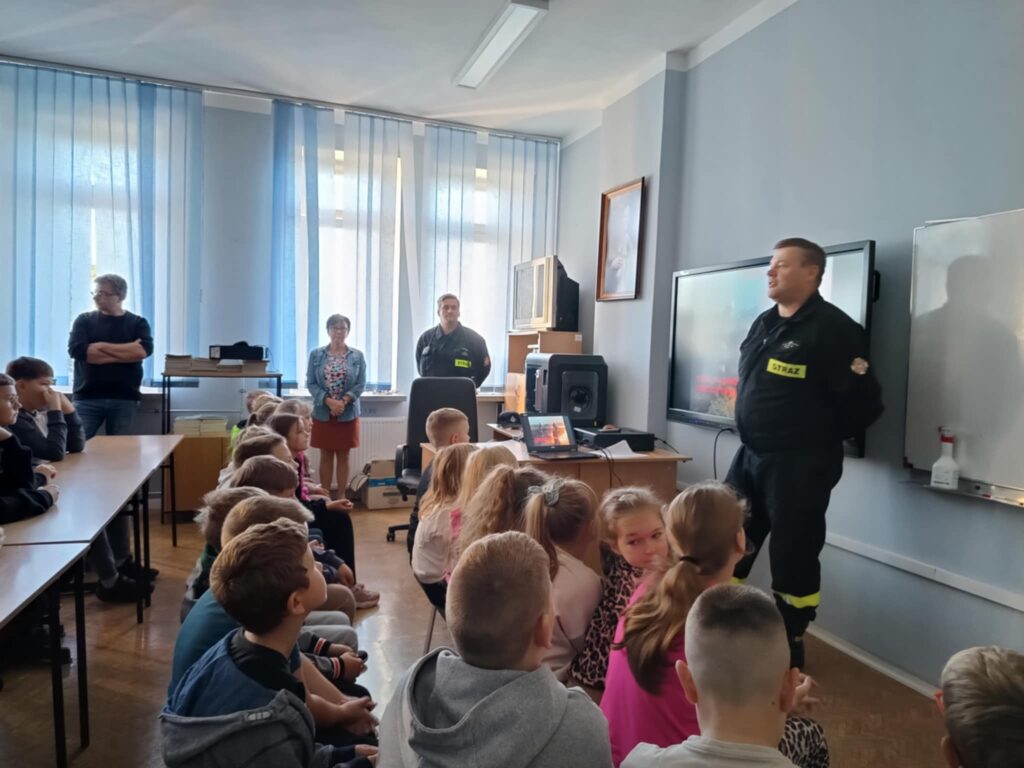 Strażacy przybliżyli uczniom oraz nauczycielom tematykę obowiązującego w Polsce systemu alarmowania i ostrzegania ludności. Omówili szczegółowo rodzaje sygnałów alarmowych, ich znaczenie oraz sposób, w jaki są przekazywane. Zwrócili uwagę na konieczność uważnego reagowania na komunikaty ostrzegawcze i stosowania się do obowiązujących procedur.
