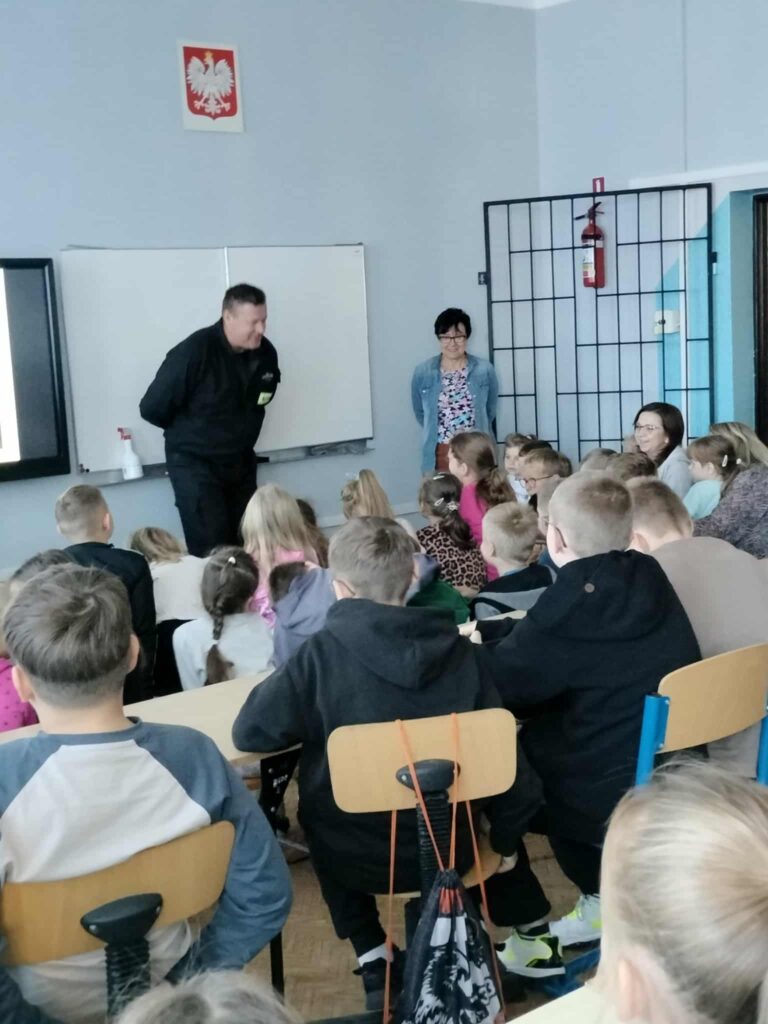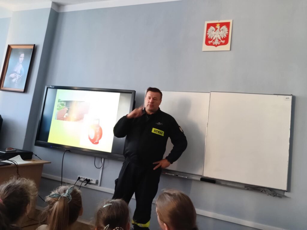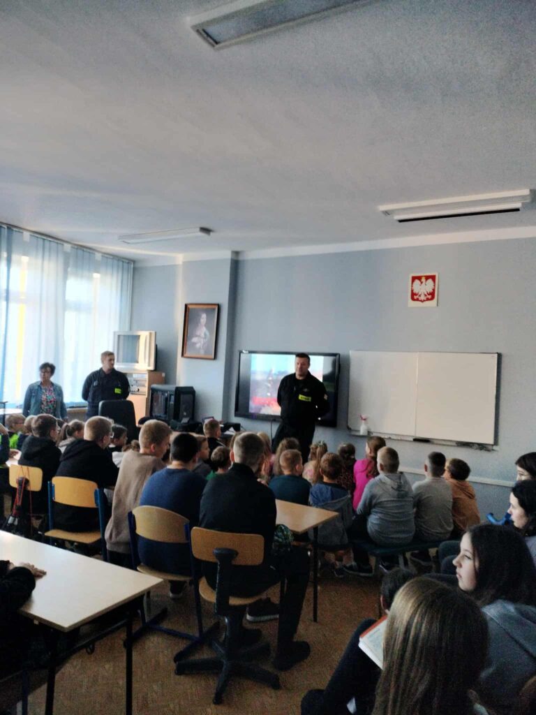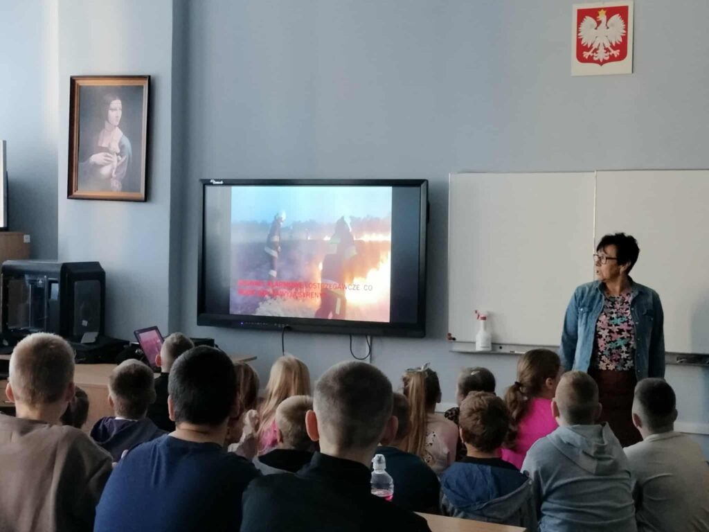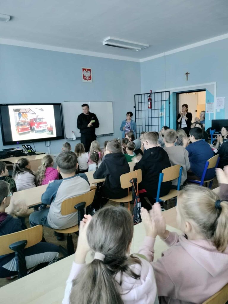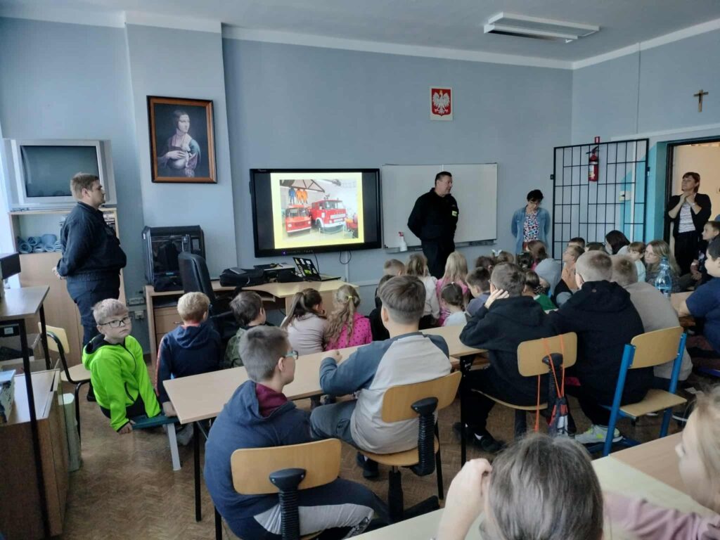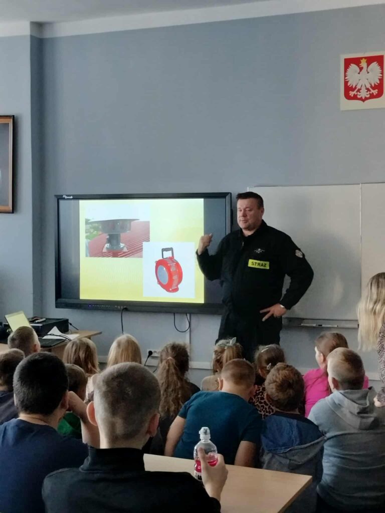 Strażacy przybliżyli uczniom oraz nauczycielom tematykę obowiązującego w Polsce systemu alarmowania i ostrzegania ludności. Omówili szczegółowo rodzaje sygnałów alarmowych, ich znaczenie oraz sposób, w jaki są przekazywane. Zwrócili uwagę na konieczność uważnego reagowania na komunikaty ostrzegawcze i stosowania się do obowiązujących procedur.