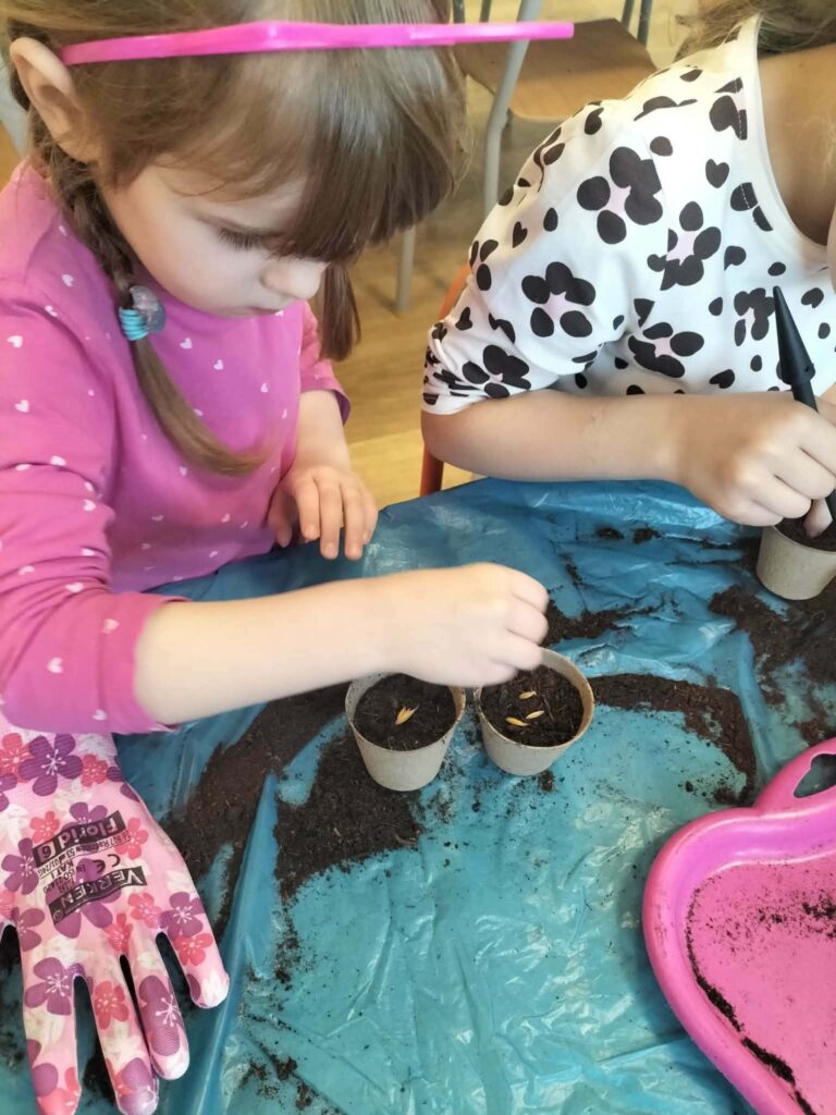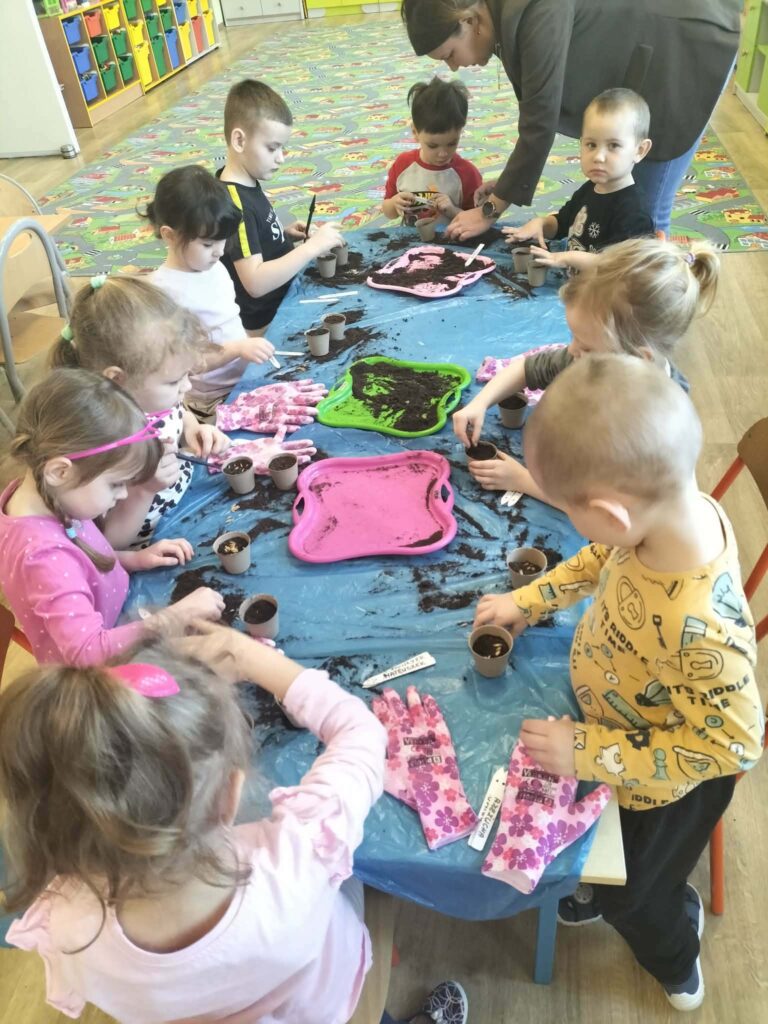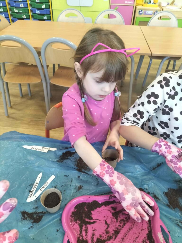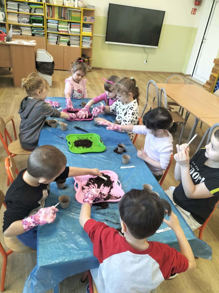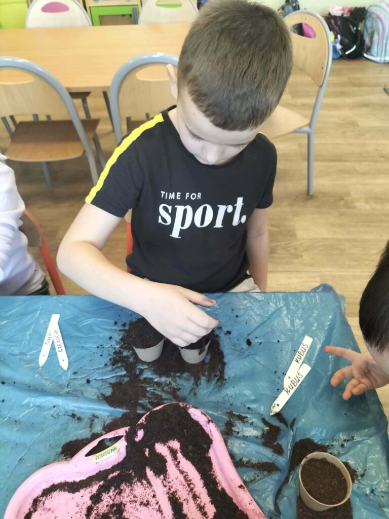 Dzieci z przedszkola oraz zerówki wzięły udział w wiosennych zajęciach przyrodniczych. Podczas zajęć samodzielnie przygotowywały swoje małe uprawy. Najpierw dzieci same wsypywały ziemię do przygotowanych pojemniczków, a następnie wysiewały nasiona rzeżuchy, owsa oraz różnych ziół. Z dużym zaangażowaniem podlewały zasiane rośliny i dowiadywały się, czego potrzebują one do prawidłowego wzrostu.