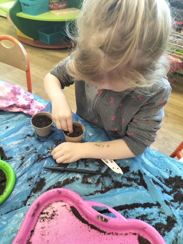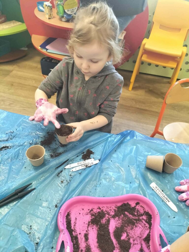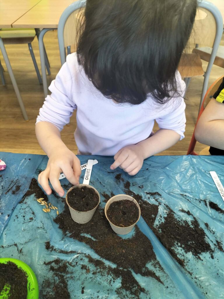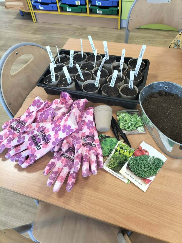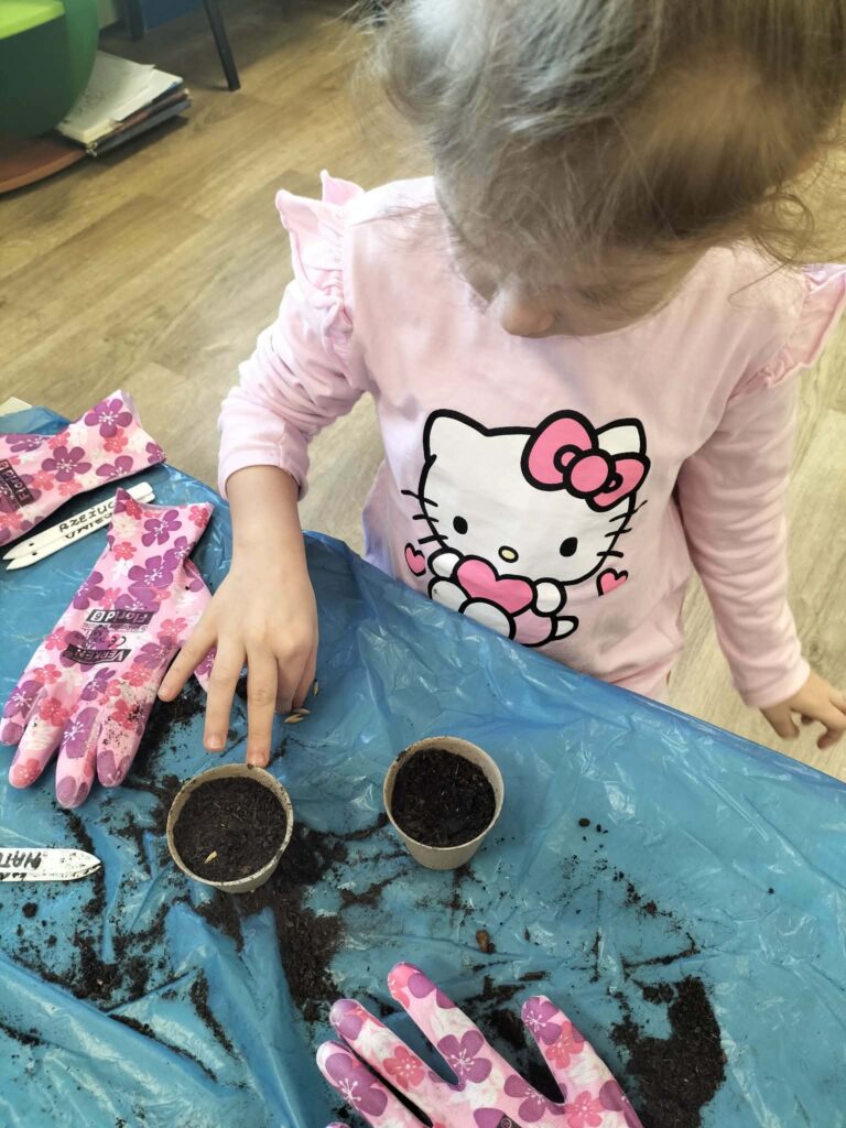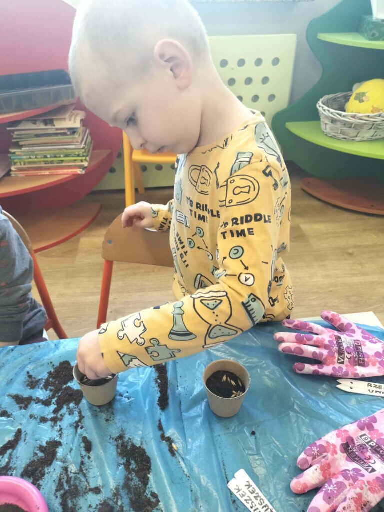 Dzieci z przedszkola oraz zerówki wzięły udział w wiosennych zajęciach przyrodniczych. Podczas zajęć samodzielnie przygotowywały swoje małe uprawy. Najpierw dzieci same wsypywały ziemię do przygotowanych pojemniczków, a następnie wysiewały nasiona rzeżuchy, owsa oraz różnych ziół. Z dużym zaangażowaniem podlewały zasiane rośliny i dowiadywały się, czego potrzebują one do prawidłowego wzrostu.