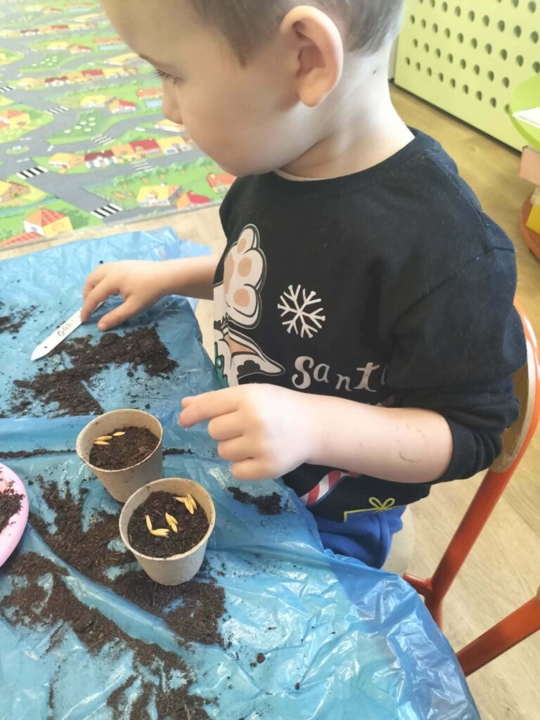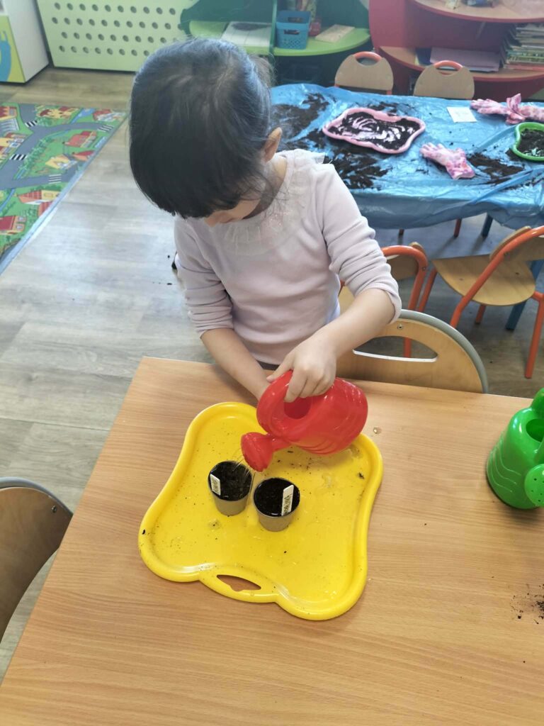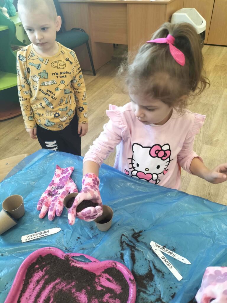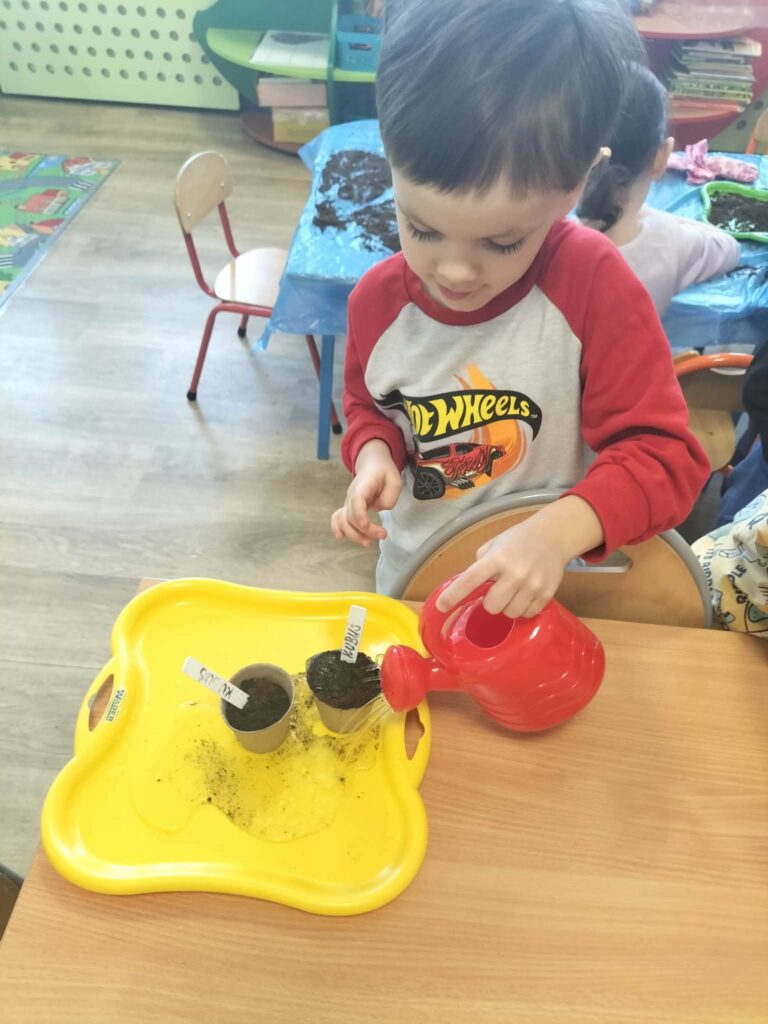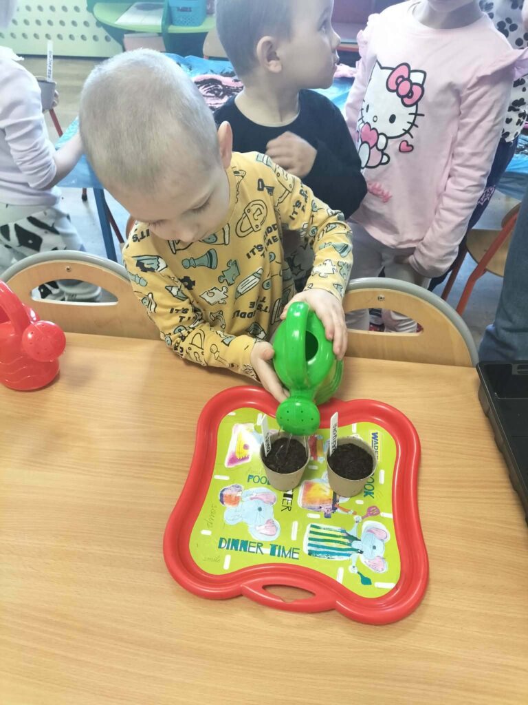 Aby łatwo rozpoznać swoje uprawy, dzieci oznaczyły doniczki podpisami. Dzięki temu będą mogły obserwować, jak z dnia na dzień pojawiają się pierwsze kiełki i jak rośliny się rozwijają. W kolejnych dniach przedszkolaki będą regularnie podlewać swoje rośliny oraz prowadzić obserwacje ich wzrostu, ucząc się cierpliwości i troski o przyrodę.
