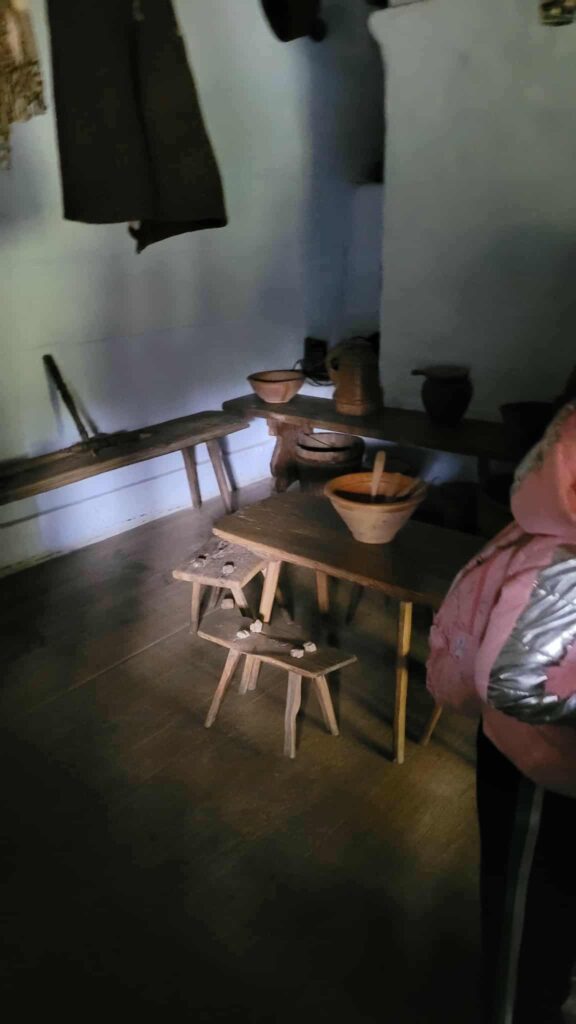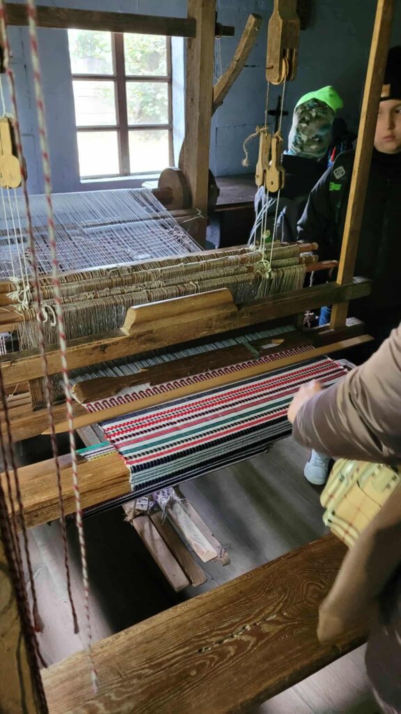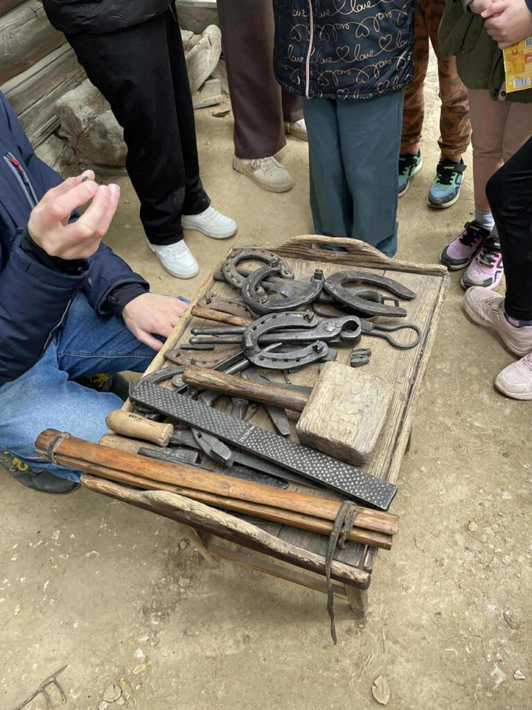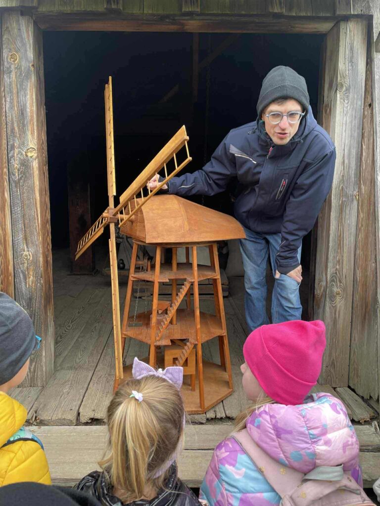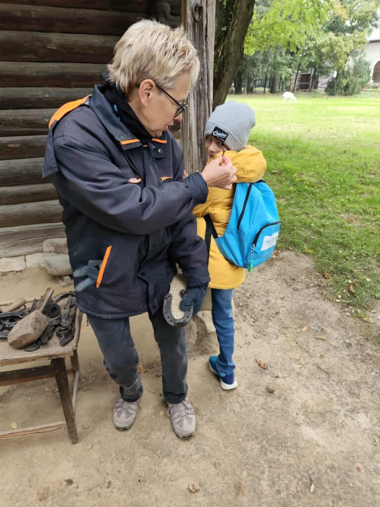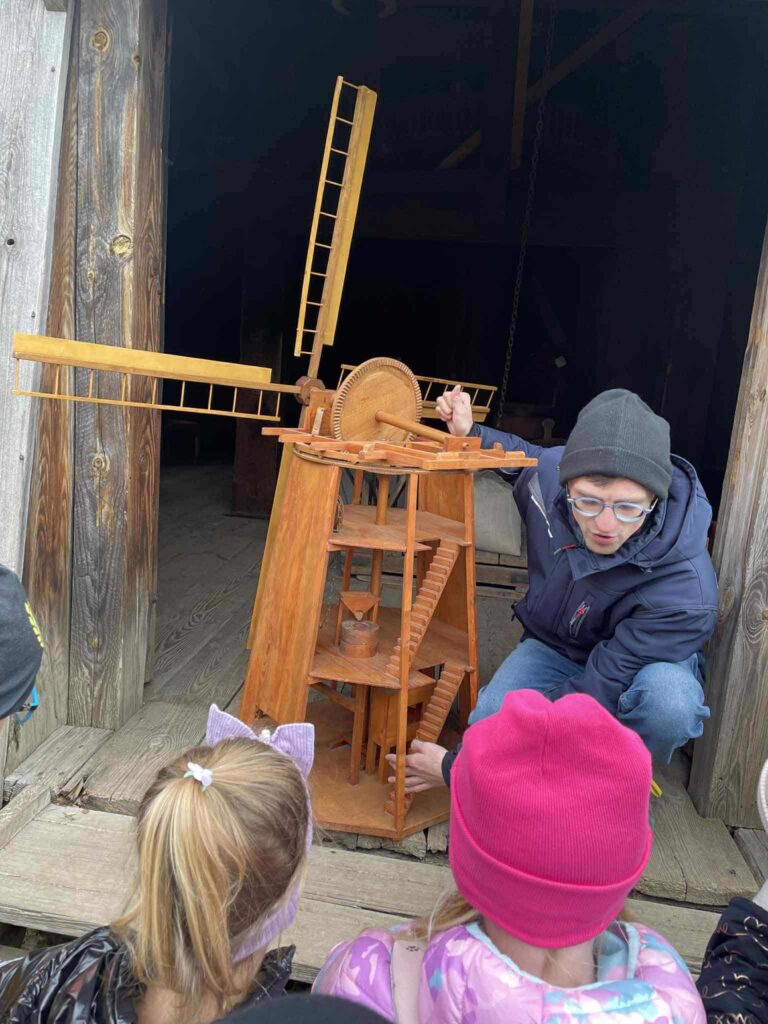 Po przyjeździe na miejsce uczniowie z ogromnym zaciekawieniem zwiedzali stare chaty, kuźnię, młyn oraz budynek w którym mieszkał i pracował garncarz. Przewodnicy opowiadali o codziennym życiu naszych pradziadków, dawnych zawodach, narzędziach używanych w gospodarstwach oraz zwyczajach ludowych. Dzieci miały okazję zobaczyć, jak wyglądało dawne gospodarstwo domowe.