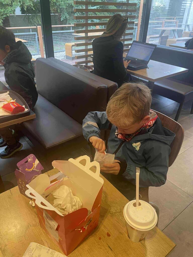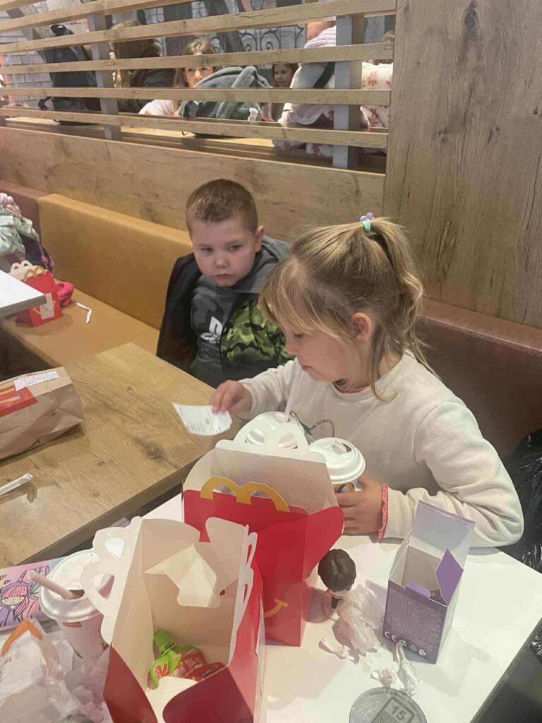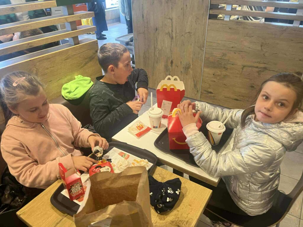 Po zwiedzaniu skansenu przyszedł czas na coś, co ucieszyło wszystkich uczestników wycieczki – wizytę w McDonald’s. Dzieci z radością zjadły swoje ulubione zestawy i z uśmiechami na twarzach dzieliły się wrażeniami z całego dnia.