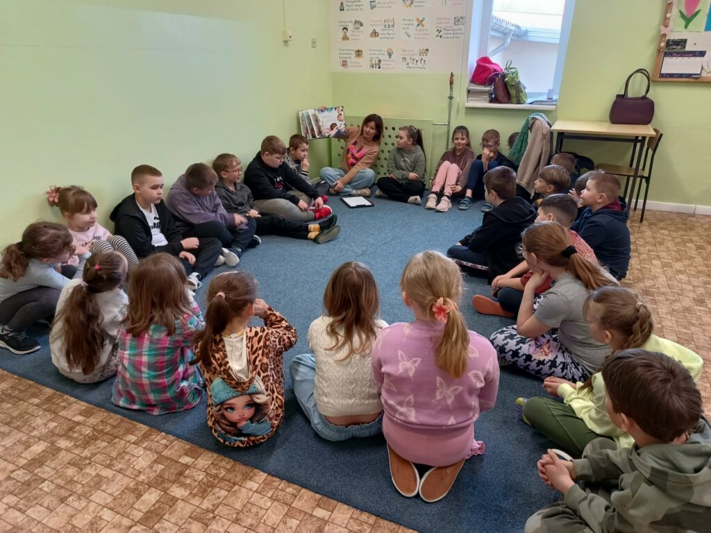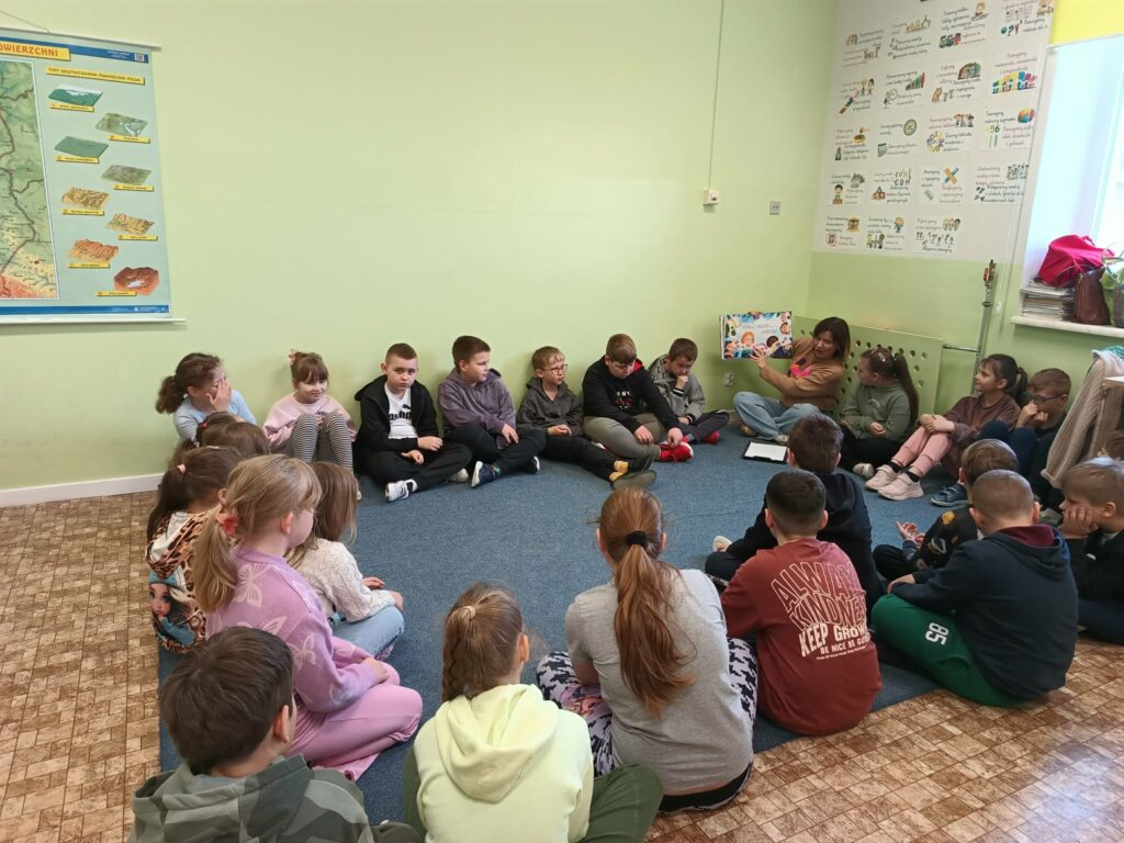 W poniedziałek 30 marca 2026 r. mieliśmy przyjemność gościć w naszej szkole psychologa z Poradni Psychologiczno-Pedagogicznej w Łęcznej, panią Katarzynę Kuziołę, która przeprowadziła warsztaty psychoedukacyjne dla uczniów klas 1–8 pt. „Samoocena – budowanie własnych kompetencji”.